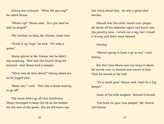 The North Star soccer team is thrilled when Shane, the new boy at school, turns out to be a talented goalkeeper. But Shane has a temper that gets him in trouble and a demanding father who acts out on the sidelines at every game. Soon Shane’s teammates start to worry that something is really wrong—and that Shane’s not nearly as tough as he seems.