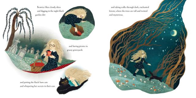 • "“With stunning illustrations and sweet messaging, BEATRICE LIKES THE DARK is a sweeping picture book about sisterhood and celebrating differences."
