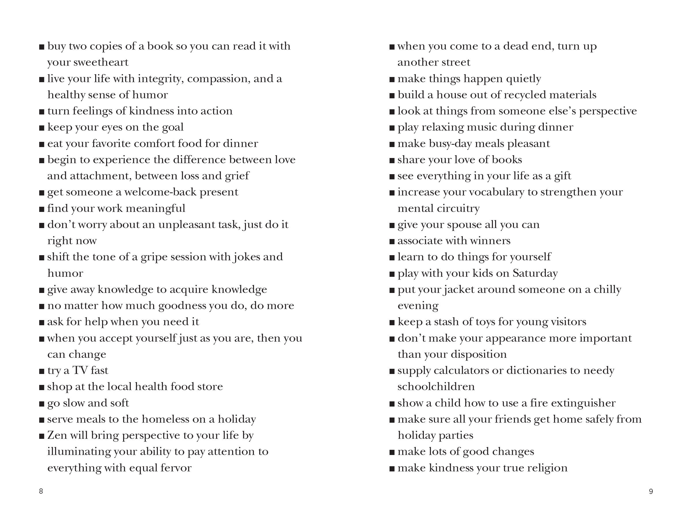 Created by Barbara Ann Kipfer, the author whose books-including 14,000 Things to Be Happy About, 8,789 Words of Wisdom, and The Wish List-have 1.2 million copies in print, Instant Karma is a compulsive, densely packed, chunky little book of 10,000 or so suggestions, wishes, thoughts, and the occasional heartening quotation.