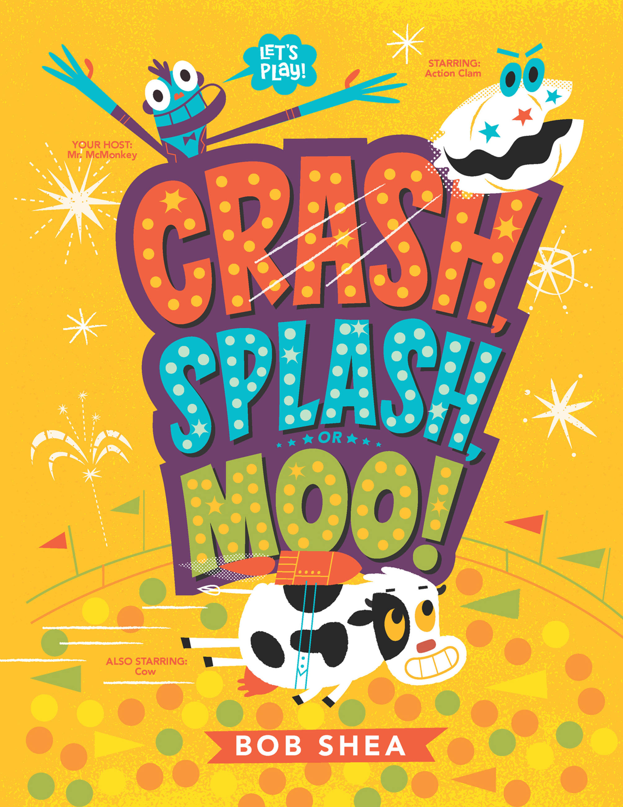 Mr. McMonkey is your host, and your contestants are America's favorite stunt clam, Action Clam…and a cow! These unlikely daredevils face off in a zany sequence of challenges–and readers get to guess the outcome of all the wacky stunts. The winner gets a Golden Banana!
