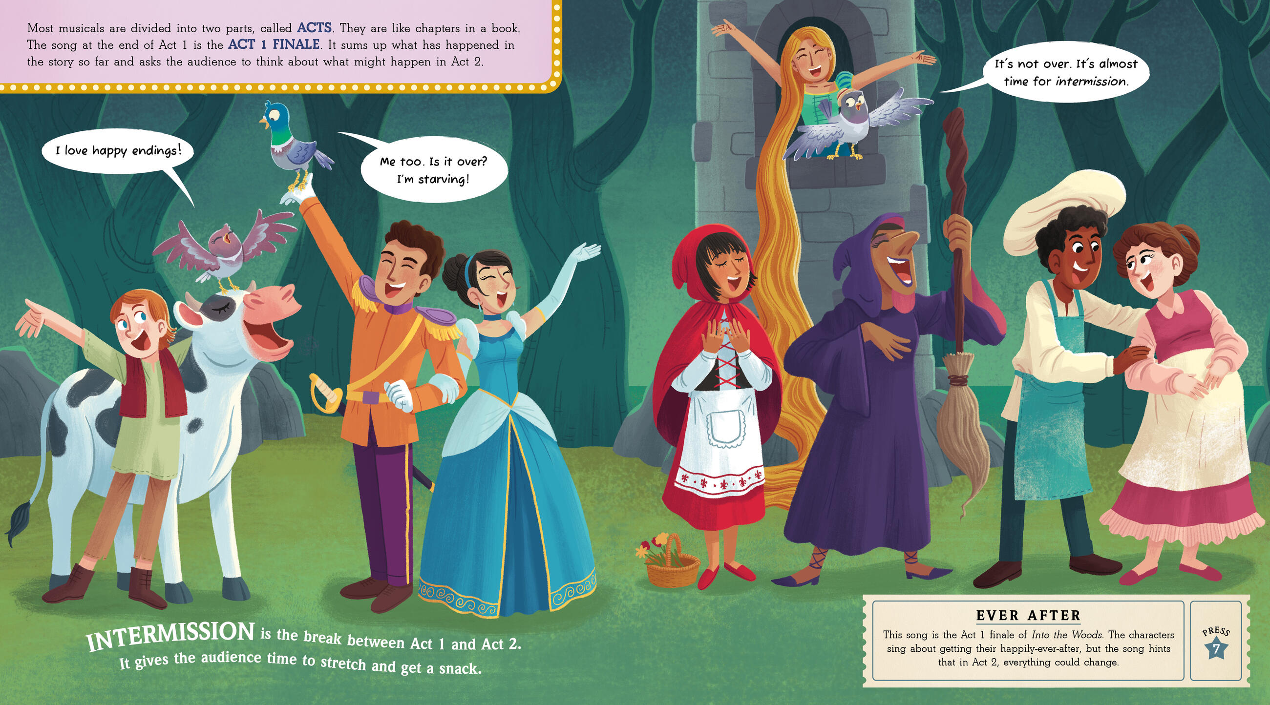 Embark on a dazzling adventure through New York City’s theater district, and the shows it’s famous for, in this illustrated introduction to Broadway musicals, for readers ages 4 and up. As you read, press the 12 interactive sound buttons that play iconic show tunes—including “For Good” from Wicked, “Tomorrow” from Annie, “Belle” from Beauty and the Beast, and so many more. You’ll hear the rhythmic steps of a tap dancer, a singer belting a solo, two infamous witches singing a duet, and a chorus performing a showstopping finale.