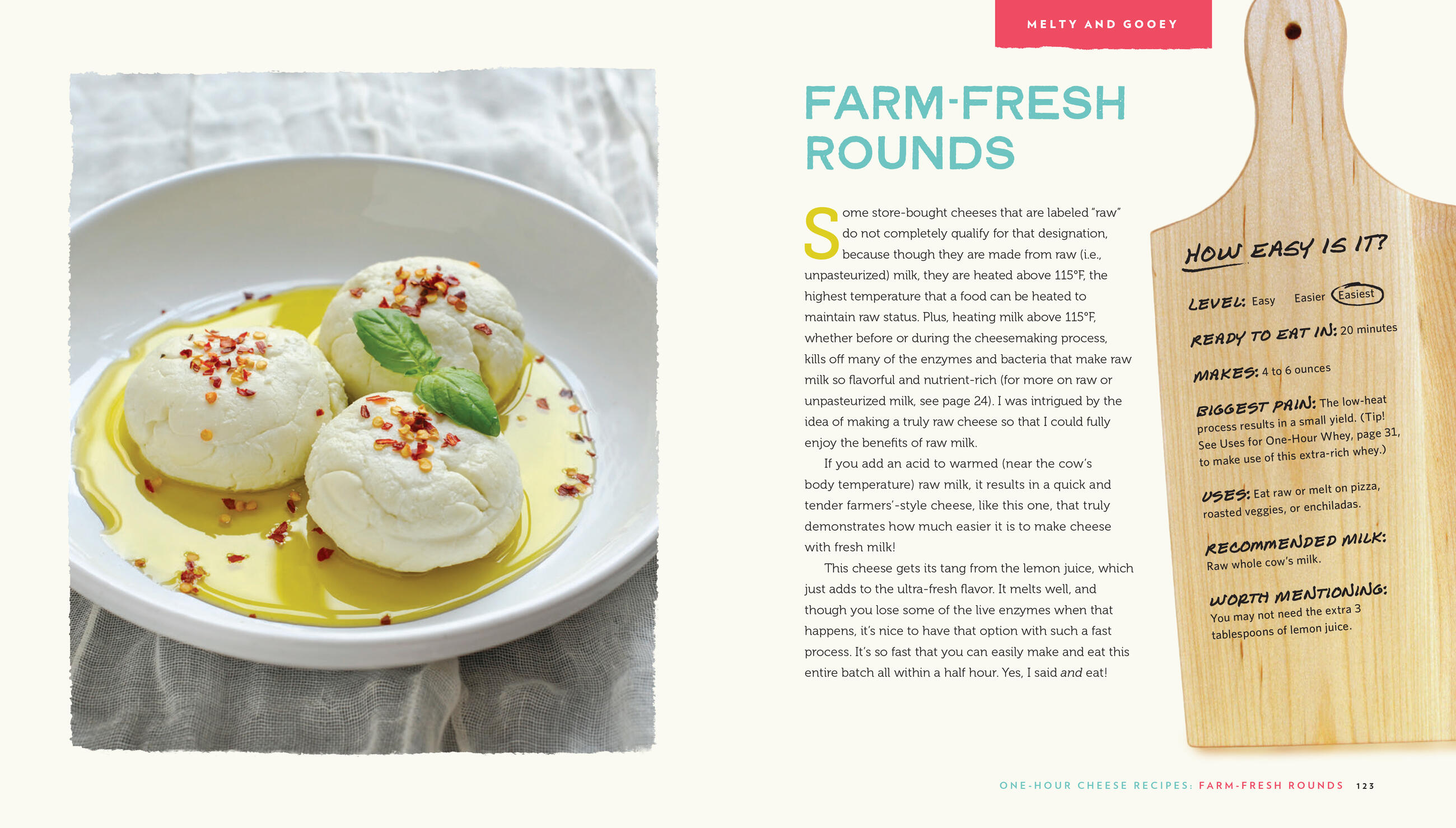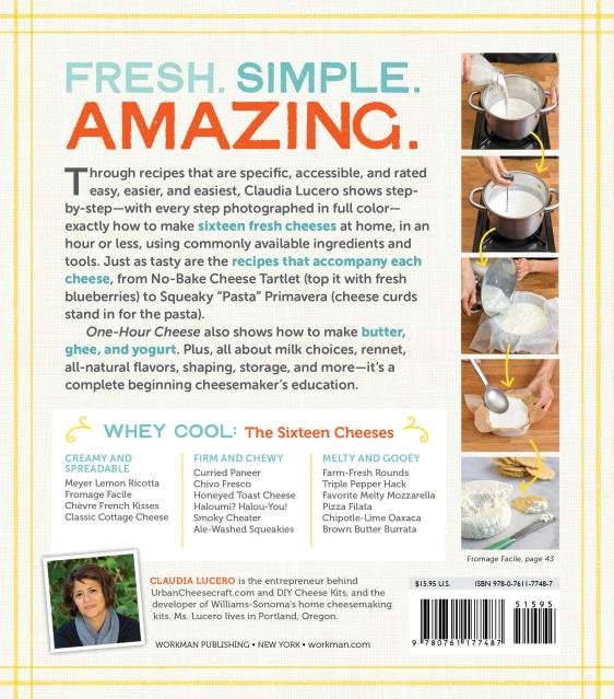 Through recipes that are specific, accessible, and rated easy, easier, and easiest, Claudia Lucero shows step-by-step—with every step photographed in full color—exactly how to make sixteen fresh cheeses at home, in an hour or less, using commonly available ingredients and tools. Just as tasty are the recipes that accompany each cheese, from No-Bake Cheese Tartlet (top it with fresh blue berries) to Squeaky “Pasta” Primavera (cheese curds that stand in for the pasta).