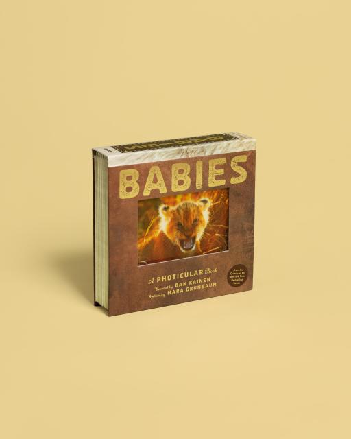 The bestselling Photicular series just got a cuteness injection with BABIES. Using an innovative lenticular-based technology, precision sliding lenses, and four-color video imagery, each image is like a 3D movie on the page, delivering a rich, fluid, immersive visual experience. A litter of puppies dash through the grass. A lion cub practices its roar. A mama horse and foal go for a gallop. A little chimpanzee gleefully bangs about. A sea lion pup lounges in the sun. Also featuring a penguin chick, mama bear and cub, and elephant calf.