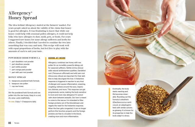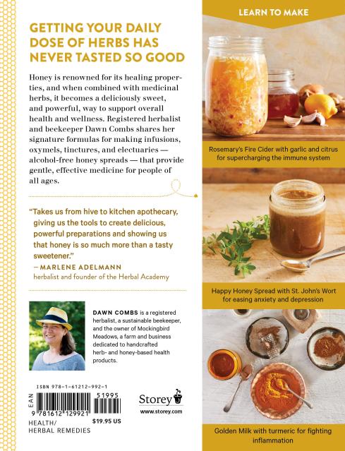 “Dawn Combs opens our eyes to the many creative ways the natural pairing of herbs and honey can infuse our lives with sweetness and health. Her expertise as a biodynamic beekeeper, herbalist, and small-batch producer takes making herbal honeys to a whole new level. Pulling from tradition, personal experience, and a little bit of science, she’s crafted a bright, beautifully laid-out book that’s chock-full of recipes, ideas, and inspiration.” — Maria Noel Groves, author of Body into Balance
