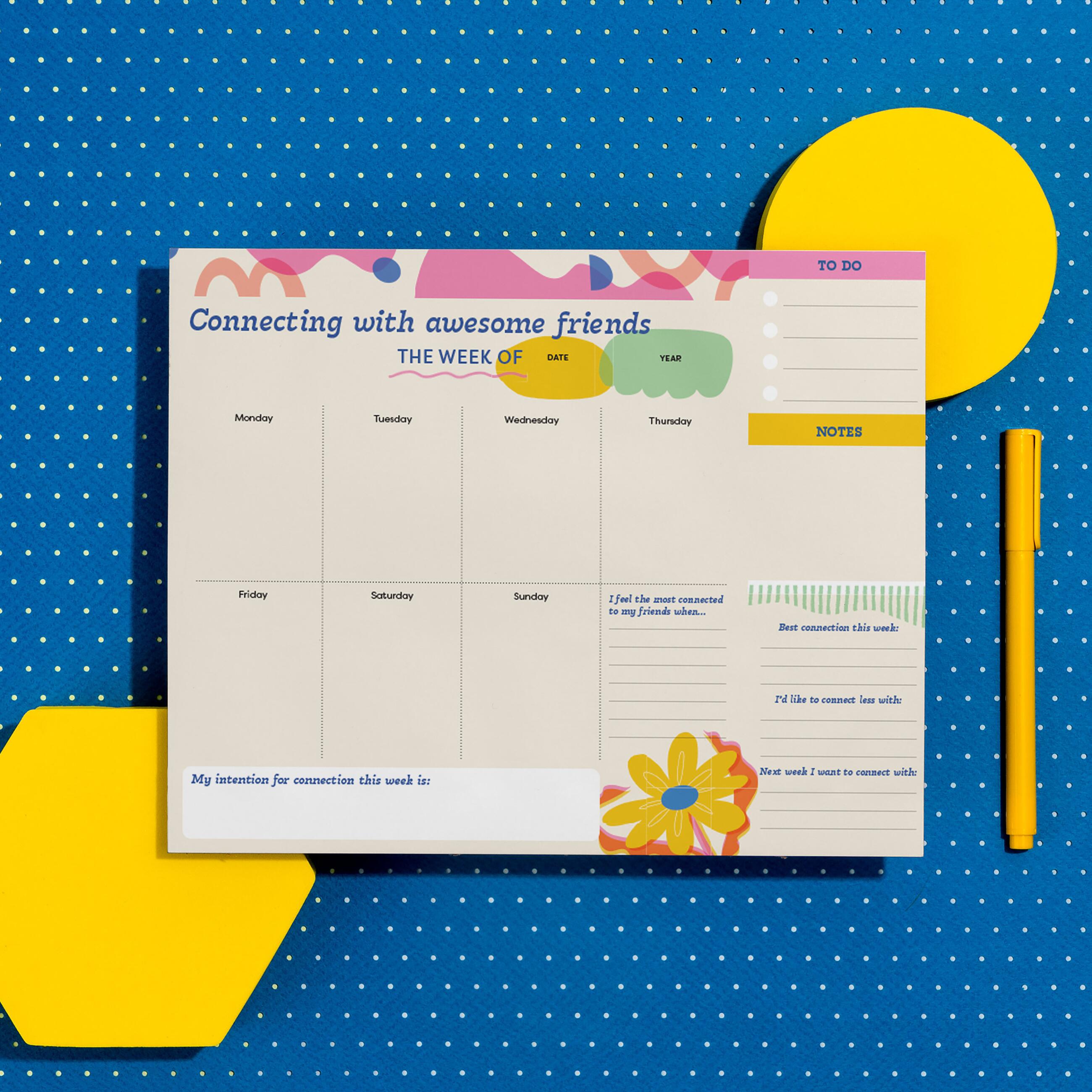 This undated weekly planner pad is super functional and super supportive — if we may say so ourselves. It allows you to plan at your own pace, while offering gentle guidance toward keeping you connected, (and in some cases – supporting you to UN-connect!) to what really matters to you in the moment. Space for declaring a weekly intention for connection, a to-do list, and notes, plus gentle prompts that’ll guide you toward your productivity priorities. This functional planner is just what you need to take care of your everyday life.