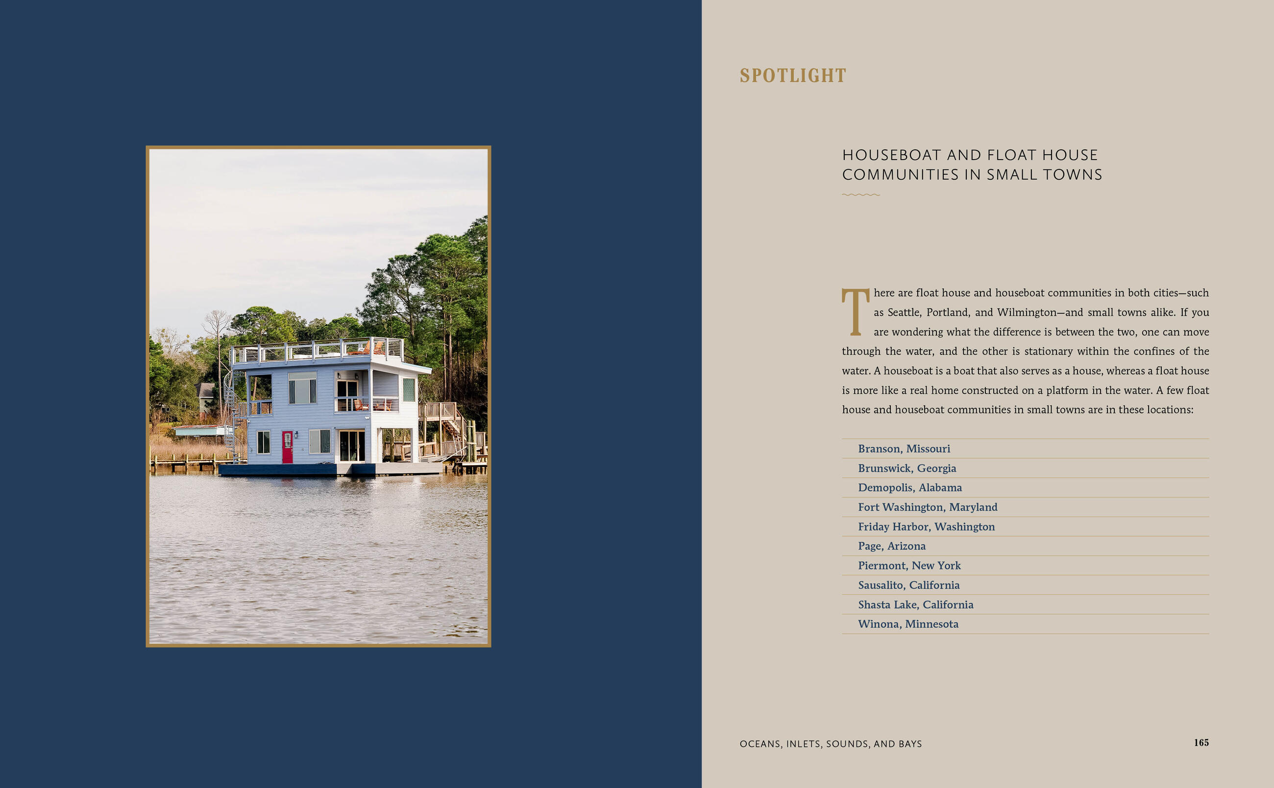 Waterfront Living highlights the rivers and bayous from Arkansas to Oregon, spends time lakeside in the Midwest, traverses oceans, inlets, sounds, and bays on the East and West Coasts, and explores islands off the shores of Seattle and New York City. Tips and sidebars help readers consider the unique opportunities and implications of small town life near the water, from starting a dream business to navigating weather and resources. A thoughtful appendix groups dozens of small towns by state, charm, and speciality as well as highlights the best locations for crabbing, sailing, waterside biking, seafood dining, and more.
