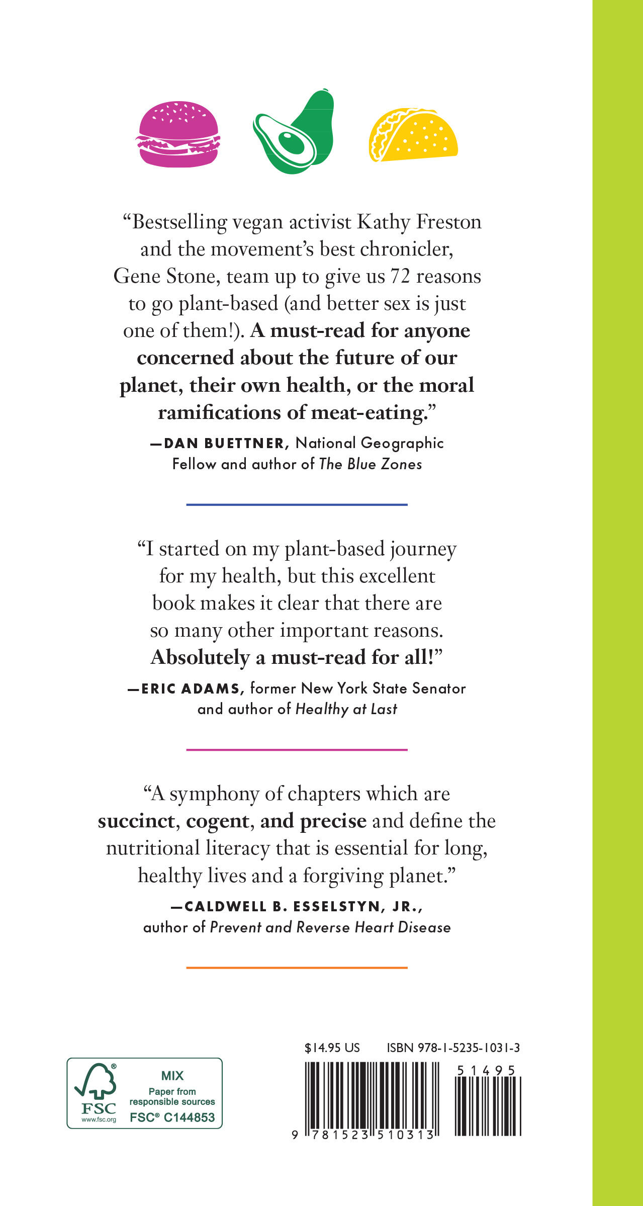 “Through outstanding writing and research, Stone and Freston have made eating plant-based thoroughly compelling and enjoyable; read this book and get ready for some seriously positive changes.” —MICHAEL GREGER, author of How Not to Die and founder of NutritionFacts.org