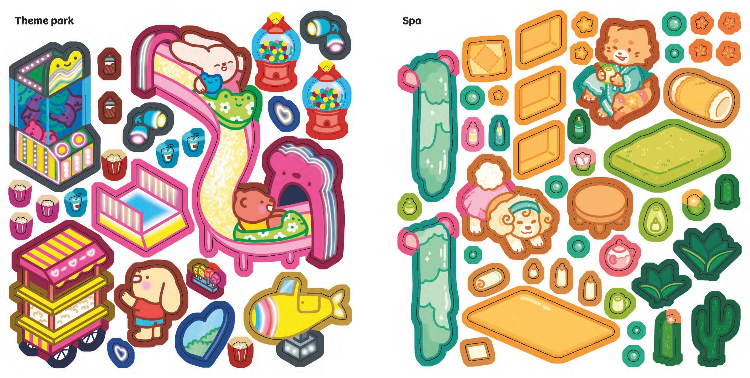 Transform 10 vacation scenes into colorful oases with this adorable, super-cute sticker activity book for fans of cozy coloring and kawaii stickers.