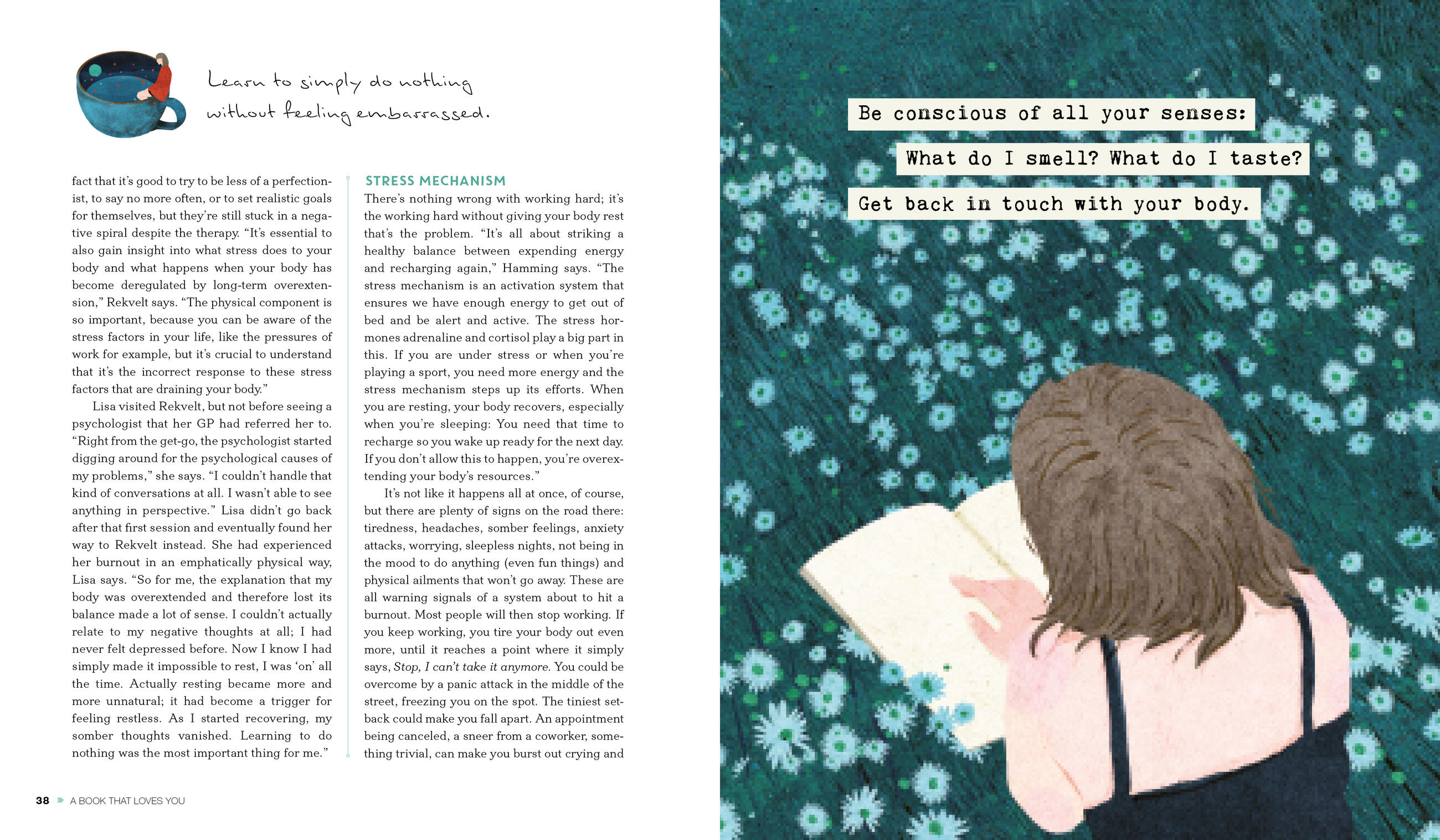 Discover the comforting effects of a daily ritual, like drinking tea. Why it’s okay—and even beautiful—to stumble now and again. Embrace the art of being alone. Release the reins on your schedule. And learn to love yourself with all your imperfections—including your over-productive mind. The book combines Flow’s signature scrapbook-like look and feel, focus on mindfulness, and high production standards. Sprinkled throughout the essays, illustrations, and sayings are paper “goodies,” designed to help readers put what they read into action: A “slow down” sticker puzzle, a pullout “My Own User Manual” map, a DIY flower to assemble and enjoy.
