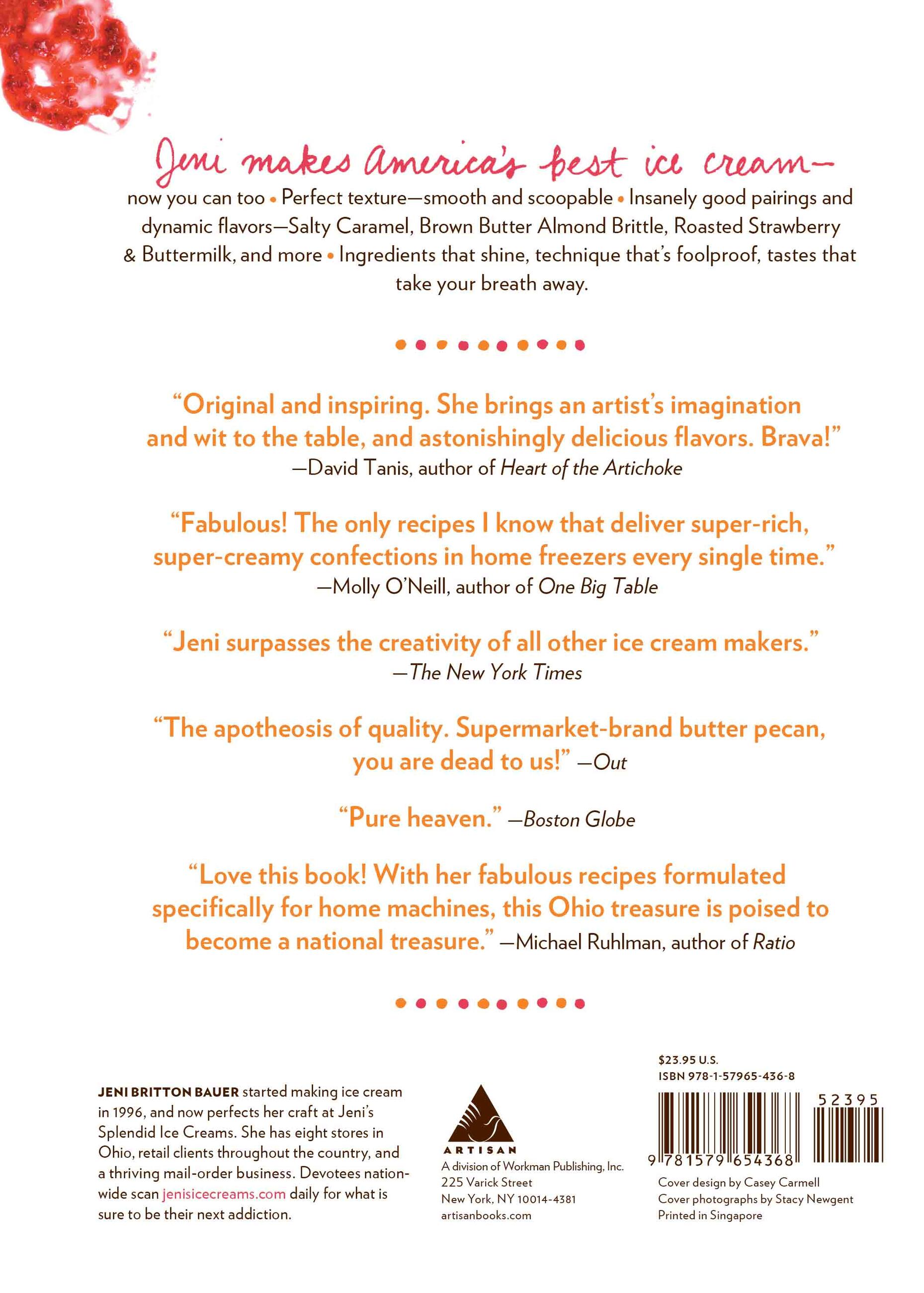 “Achieves some of the creamiest, most saturated-in-flavor ice cream that I’ve ever tasted. . . . Her basic formula is foolproof, and applies to all flavors, from nutty praline to good old-fashioned chocolate. No matter what kind of ice cream maker you use, it turns out smooth, rich results.”