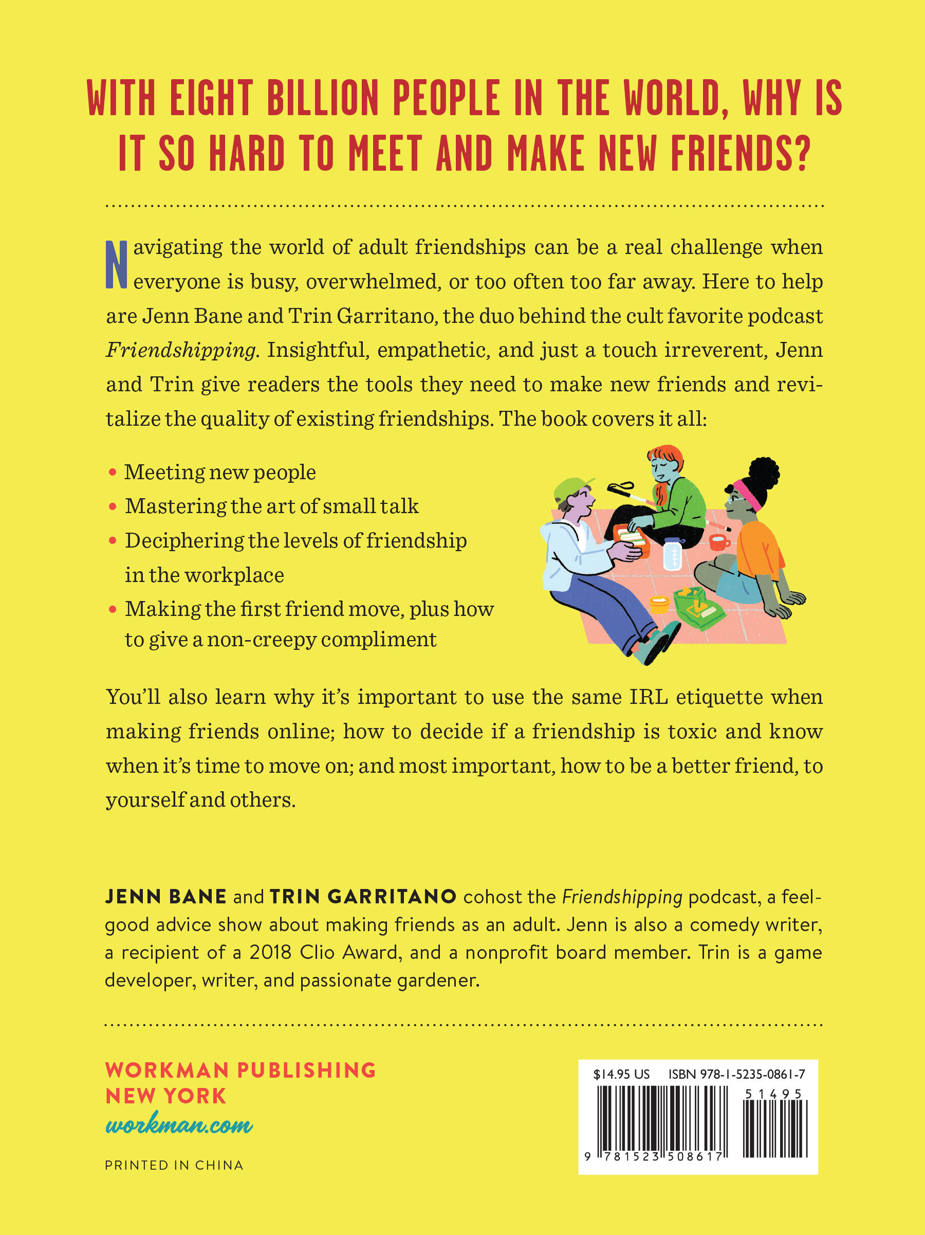 Navigating the world of adult friendships can be a real challenge when everyone is busy, overwhelmed, or too often too far away. Here to help are Jenn Bane and Trin Garritano, the duo behind the cult favorite podcast Friendshipping. Insightful, empathetic, and just a touch irreverent, Jenn and Trin give readers the tools they need to make new friends and revitalize the quality of existing friendships. The book covers it all: