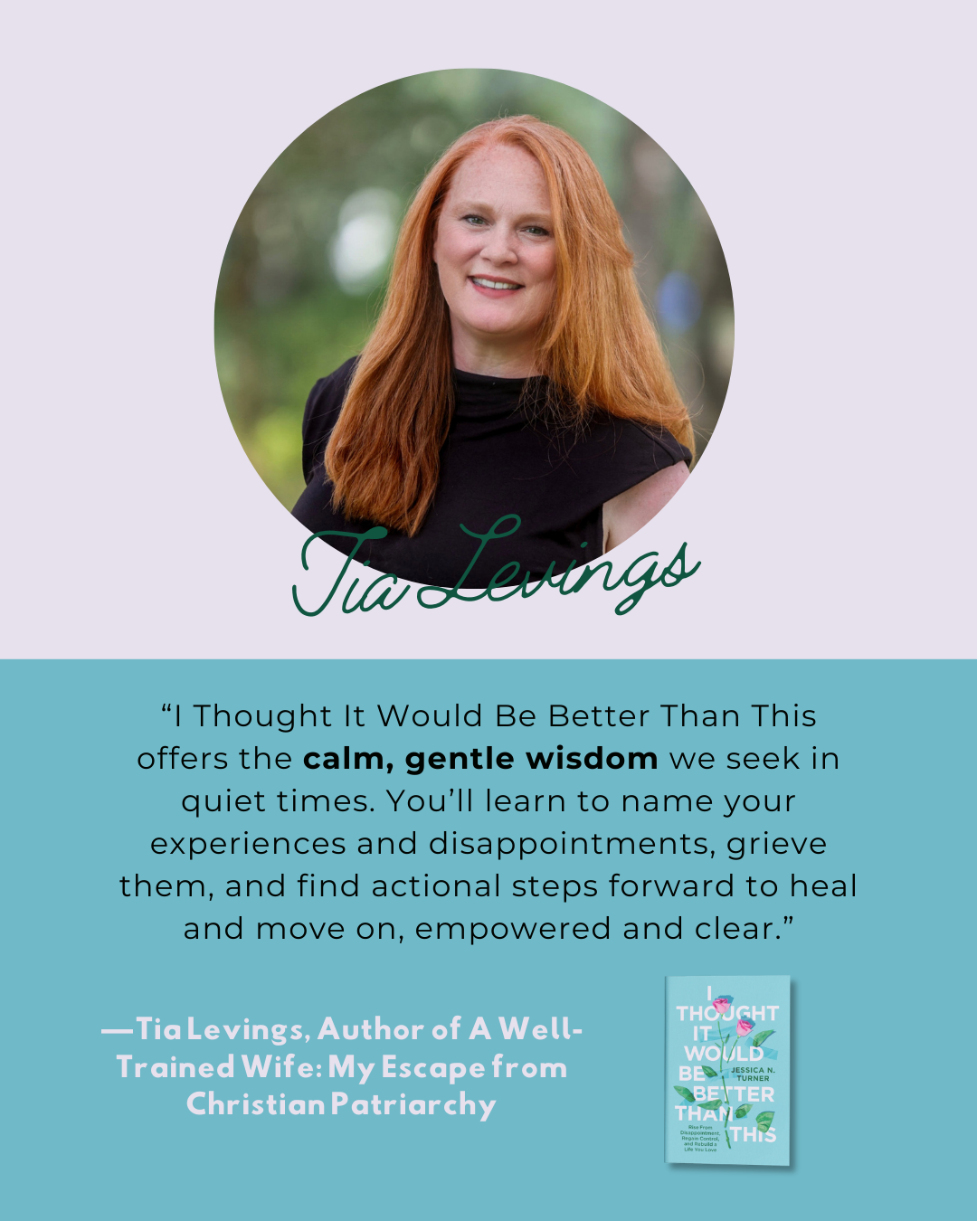 “I Thought It Would Be Better Than This offers the calm, gentle wisdom we seek in quiet times. You’ll learn to name your experiences and disappointments, grieve them, and find actional steps forward to heal and move on, empowered and clear.”Tia Levings, Author of A Well-Trained Wife: My Escape from Christian Patriarchy