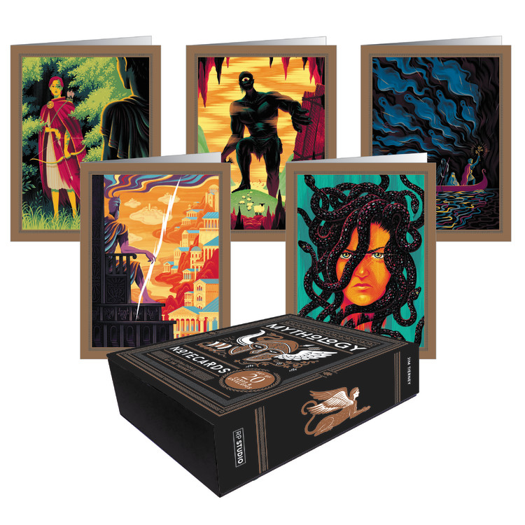 20 notecards packaged in a magnetic-closure box, featuring the stunning illustrated plates from the 75th Anniversary edition of Mythology by Edith Hamilton.