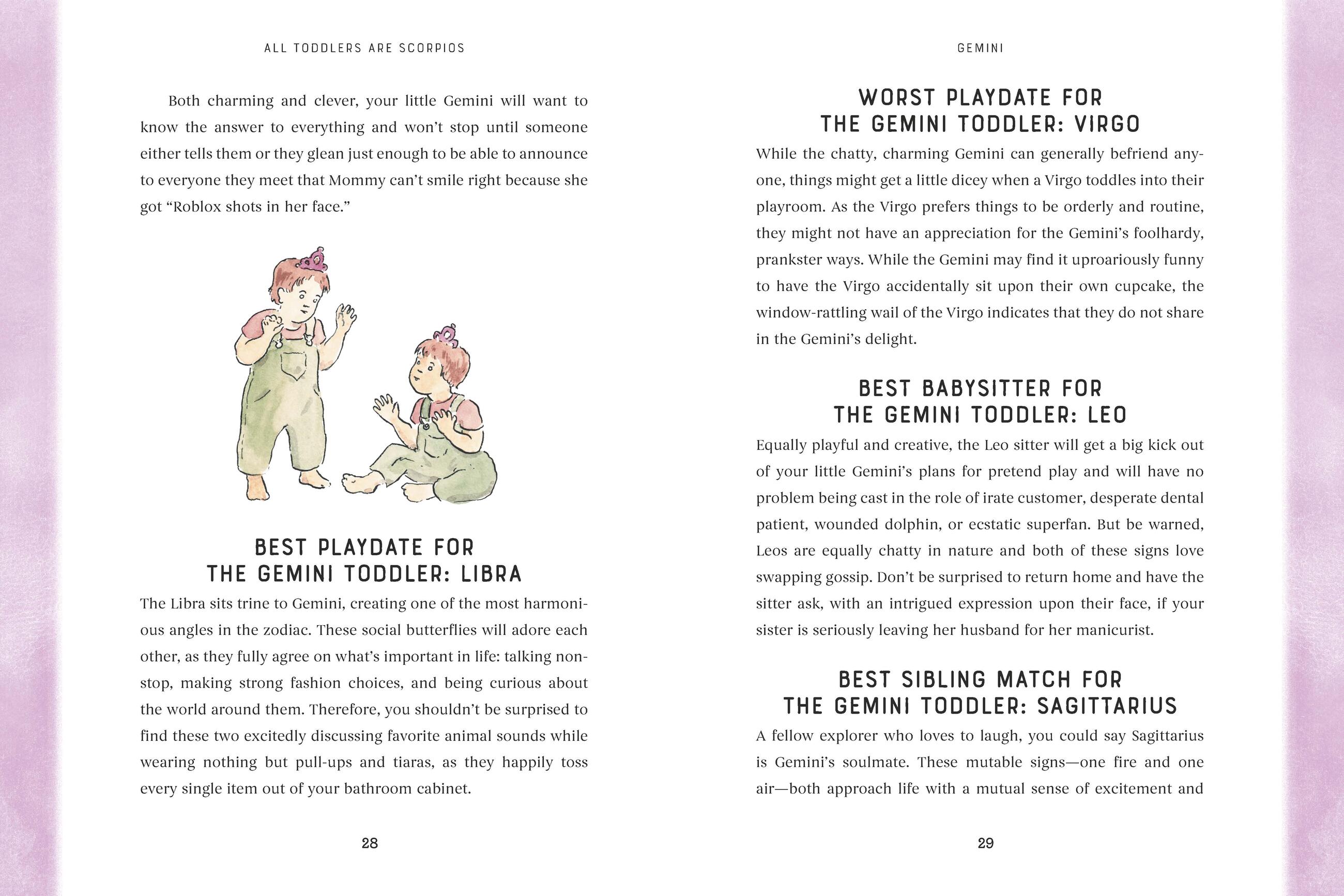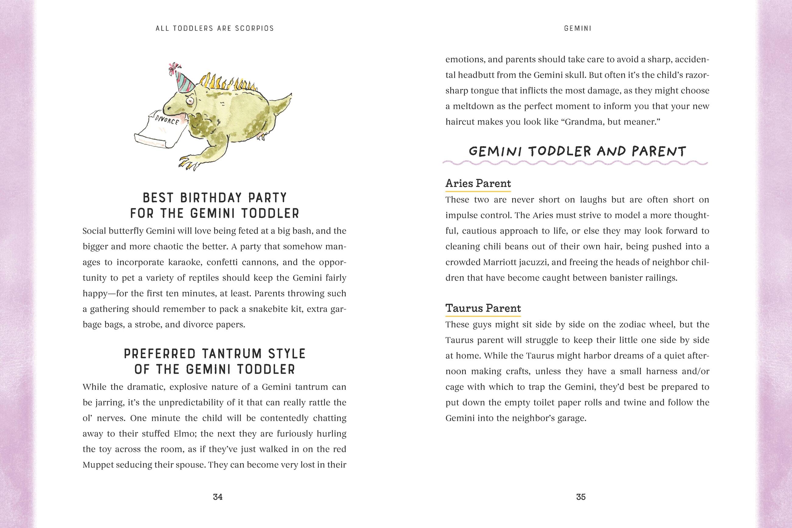 "For centuries, mankind has looked to the stars for guidance. It makes sense that we would turn to them to explain why our toddler is having a full-blown exorcist-level meltdown over the shape of the pasta he has eaten a hundred times before without incident. All Toddlers Are Scorpios is a perfect book for any parent or caregiver who could use a laugh—and something else to blame!"Nicole Tersigni, author of MEN TO AVOID IN ART AND LIFE