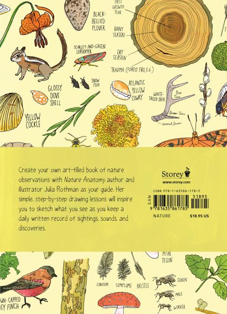 Rothman leads fans deeper into nature observation with her specially designed record pages for tracking daily nature sightings throughout the seasons. Her step-by-step technique tutorials for drawing a flower, a dragonfly, a robin, and much more, along with blank sketchbook pages, will inspire nature lovers and art enthusiasts of all ages to take up their own colored pencils or favorite pens and create their own unique Nature Anatomy Notebook.Â
