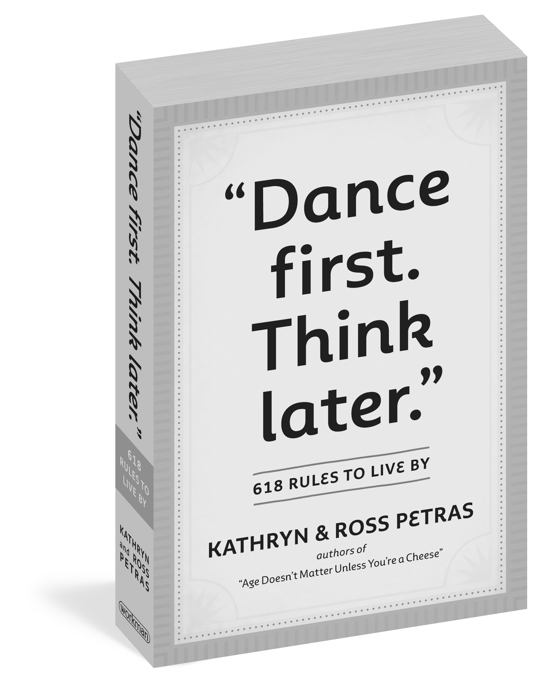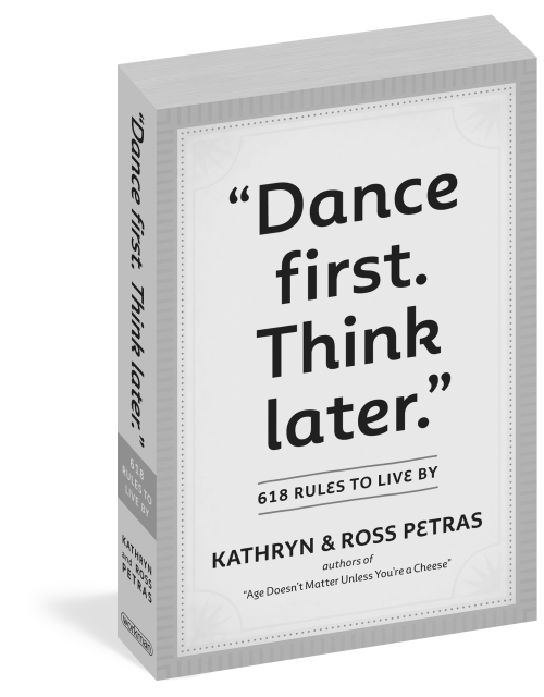 Created by Kathryn and Ross Petras, connoisseurs of quotes, whose books and calendars have over 56 million copies in print, “Dance First. Think Later.” is a collection of the greatest life wisdom from an unexpected group of speakers, doers, and thinkers. There are 618 rules to live by—funny, sly, declarative, thoughtful, offhanded, clever, and always profound: