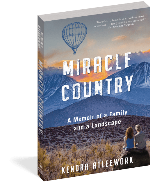 “Miracle Country is truly some kind of miracle, combining a moving family story with deft, deeply researched history. Written from the crucible of California's water wars, combined with a family story of love and loss in the high desert Eastern Sierra Nevada, Kendra Atleework's book joins the great American accounts of the West, a step beyond Joan Didion, moving from a beloved geography into a jeopardized future. Kendra Atleework is that rare writer—capable of heart-stopping memoir while performing a work of keen observation and serious history. A work of stunning acuity and candor, essential reading, already a classic narrative.”