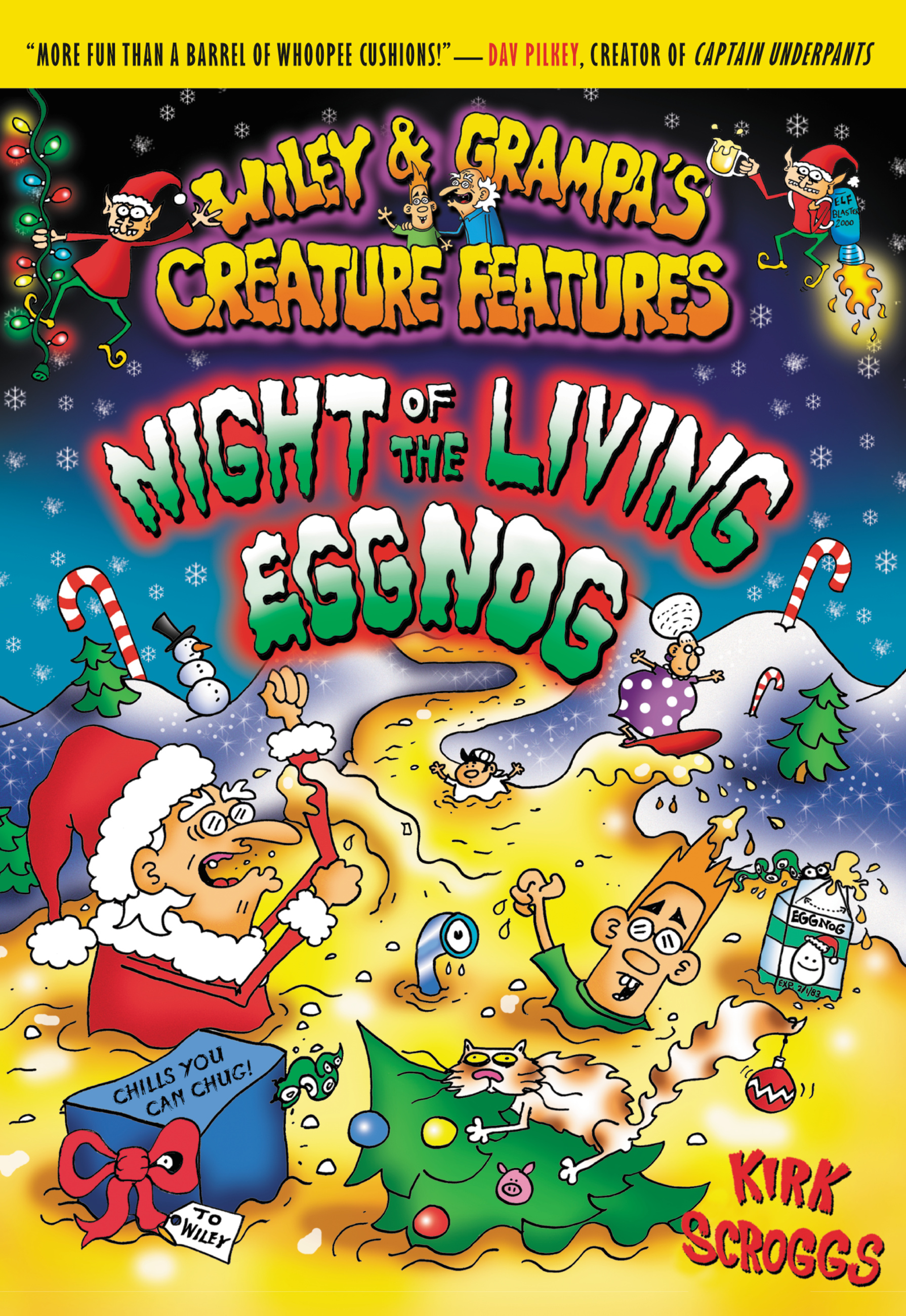 In the seventh hysterical tale, a carton of rancid eggnog bubbles to life, devouring unfortunate citizens and plastic reindeer on the lawns of Gingham County. With the power to morph into the shape of people, the eggy menace seems unstoppable, withstanding spitballs and even a group of relentless Christmas carolers. Will Wiley and Grampa, with the help of Roberto Claus–the fruitcake-wielding owner of Santa’s Happytown Shanty Village–save the day, or will the killer eggnog leave a trail of chaos and nutmeg in its slippery path?
