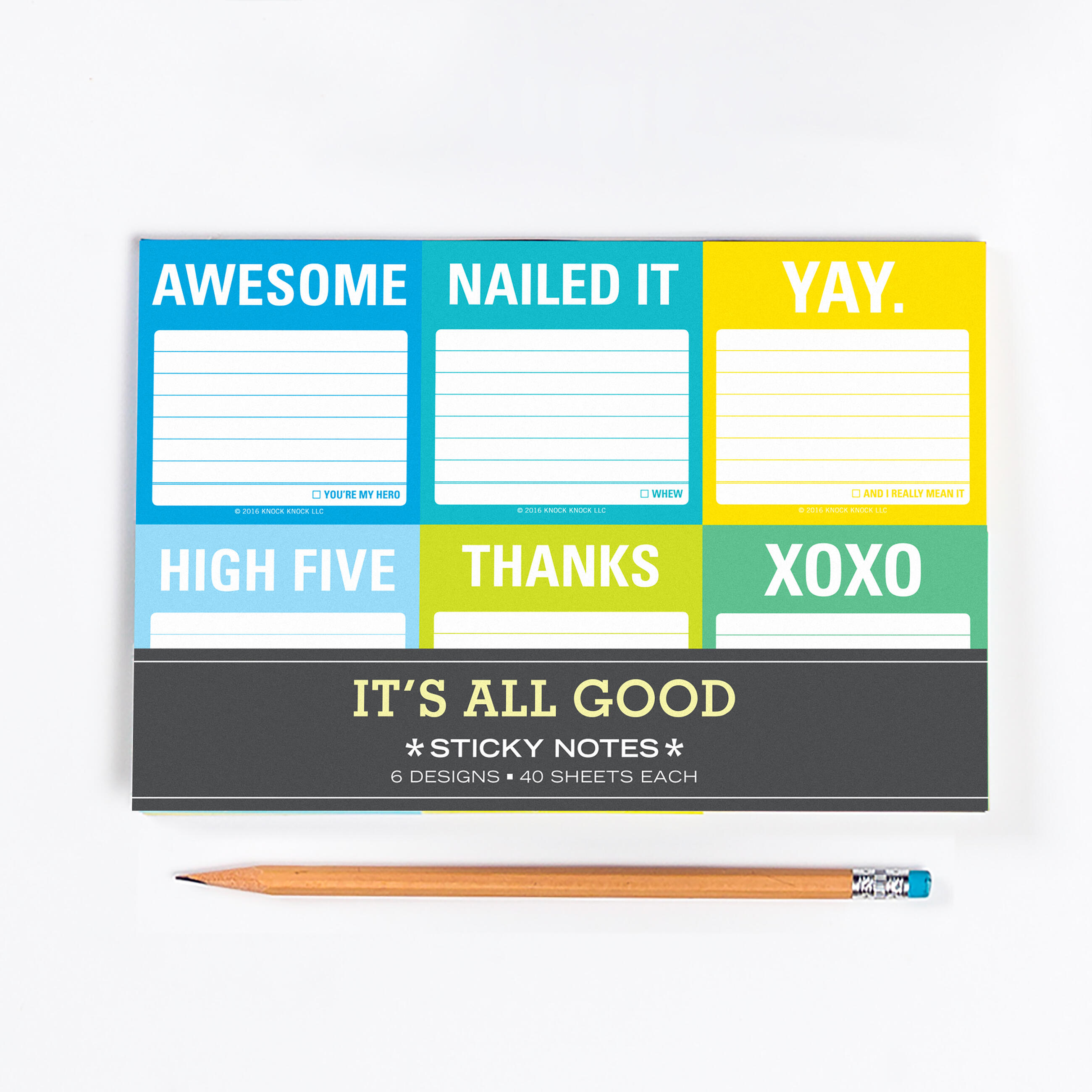 Our It’s All Good Sticky Note Packet combines your love of stickies, fun office gifts, and tidy packages, all in one slick little folio. Armed with a sticky pad for every awe-inspiring occasion, you’ll find it easy to keep it real (organized).