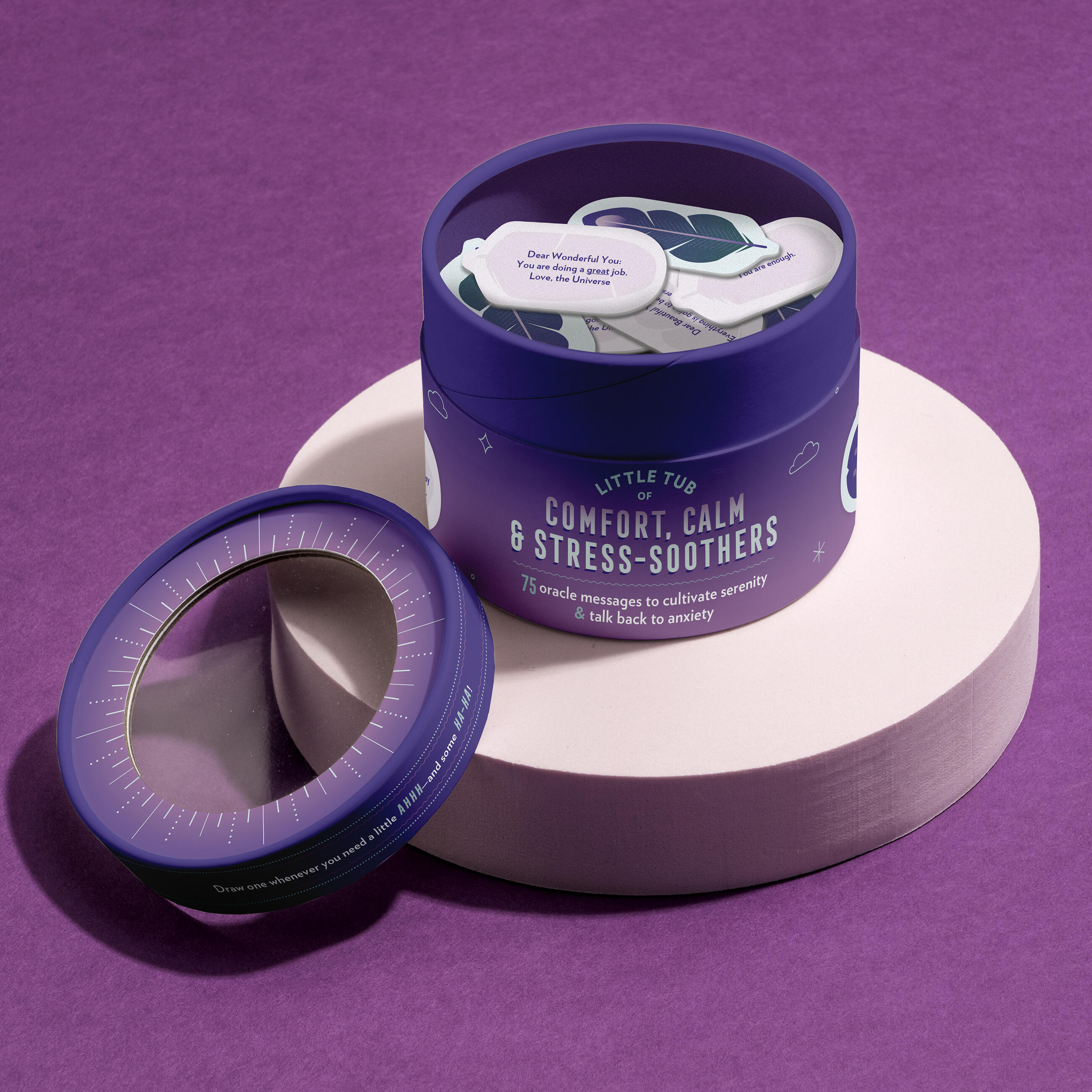 This little tub o’ stress-relief magic knows you’ve got this—& it’s gonna be OK! It’s chock-full of soothing, grounded messages to help cultivate calm & talk back to anxiety. (Kinda like little tiny oracle cards! But cuter!) Draw one whenever you want an “ahhh” from the Universe—and a “haha”! Repeat daily, weekly, hourly, or minute-ly as needed.