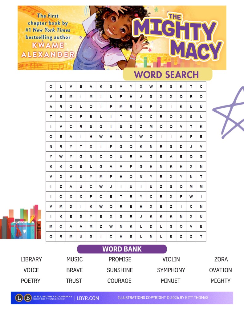 When Macy gets book one of The Mighty Zora series for her birthday, she stays up until 11:34pm finishing the book. But the next day, when Macy gets to her school library, eager to check out book two, she finds the door locked with a sign explaining that the library will now only be open a few days a week due to budget cuts. Even worse, she finds out her father won’t be home to help her figure out what to do, as he will be traveling to a museum in Montgomery, Alabama to read a poem about civil rights. With help from her fellow third graders, support from her mom, and encouragement from poems written and hidden for her by her father, Macy must find her voice and learn the power of advocating for herself and her community.