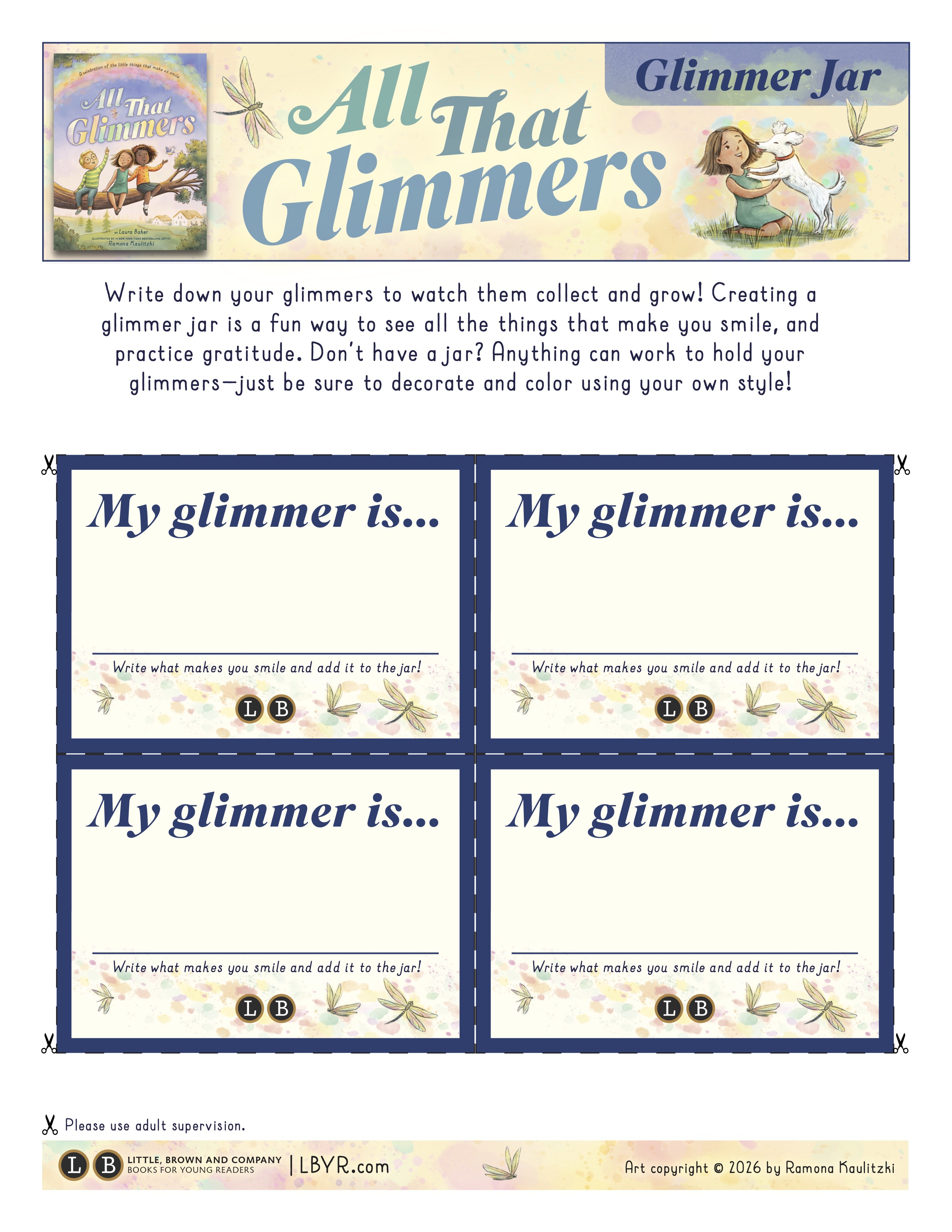 You can find a glimmer anywhere: a flower growing out of the sidewalk, a rainbow after a storm, a whiff of something delicious—even a puppy licking your nose. When you’re feeling anxious or gloomy, spotting a glimmer can calm racing thoughts or put a smile on your face. And once you begin looking, you’ll find more and more glimmers, and start sharing their magic with friends! This lyrical ode to making time for tiny moments of tranquility is a gentle introduction to mindfulness for young readers, or the perfect gift to brighten anyone’s day.