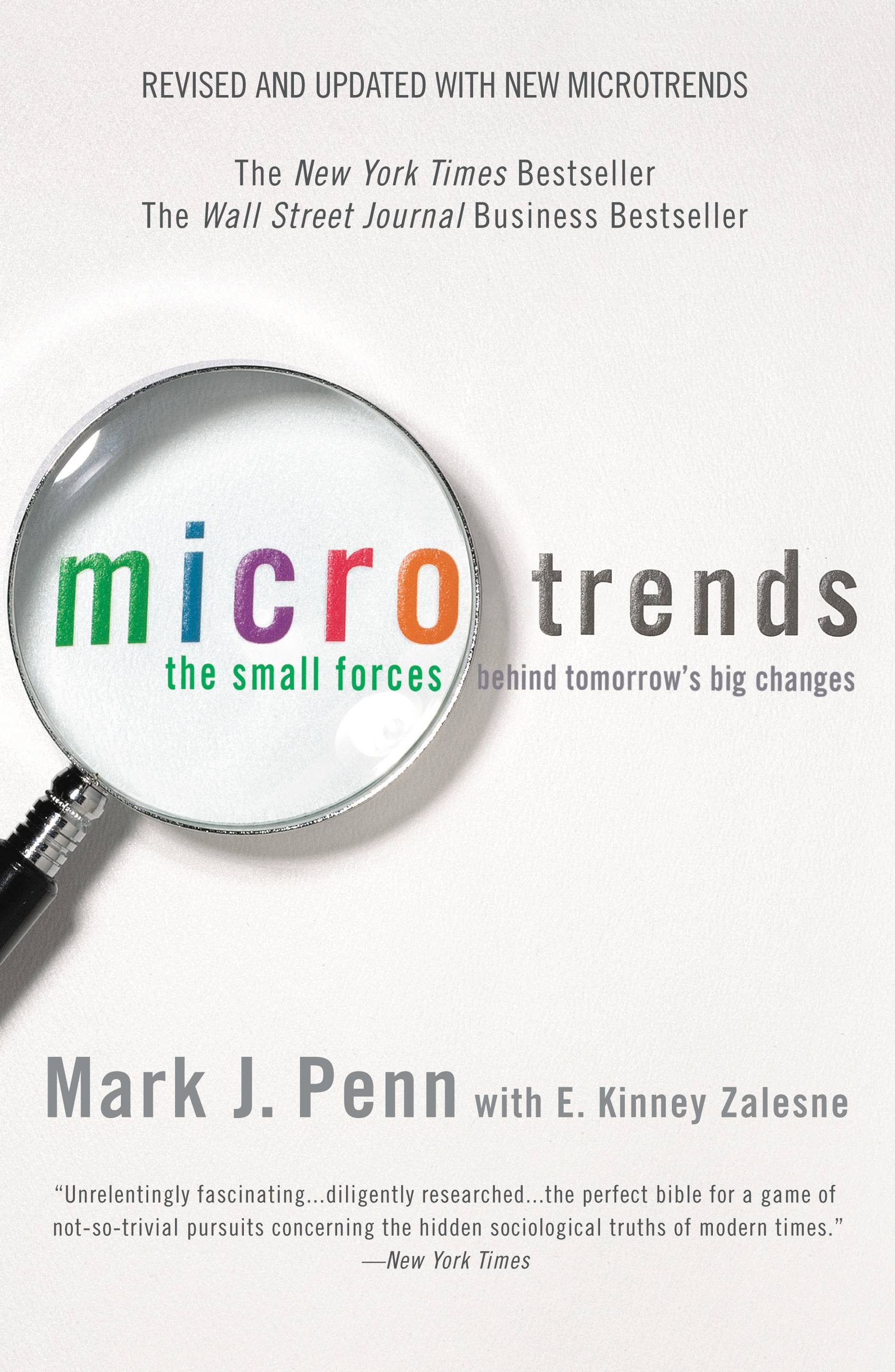 Penn shows readers how to identify the microtrends that can transform a business enterprise, tip an election, spark a movement, or change your life. In today’s world, small groups can have the biggest impact.