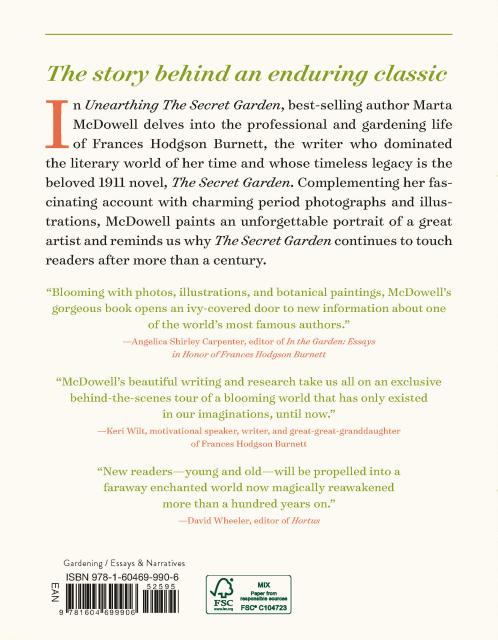 “From walled and terraced flower beds can sprout beloved children’s fiction, as the historian Marta McDowell chronicles in Unearthing the Secret Garden.” I>The New York TimesThe Literary Ladies Guide “Marta McDowell comprehensively explores the esteemed author's life before her famous story and after it, and includes a guide to the book itself.” —Bas Bleu “McDowell will help us see how Burnett’s gardens evolved and were influenced by her book before, during and after its publication." —The Start Democrat “This charming book is a must-read for fans of The Secret Garden and anyone who loves the story behind the story.” —The Emporia Gazette