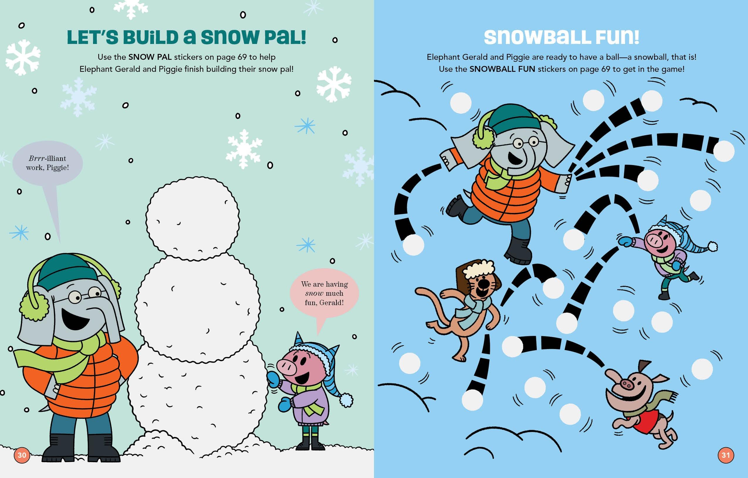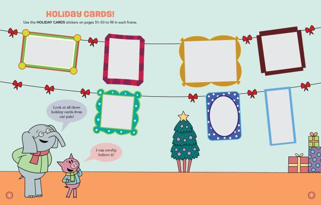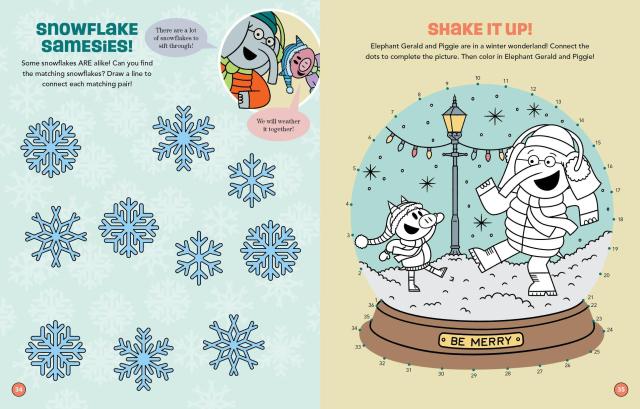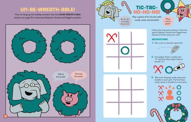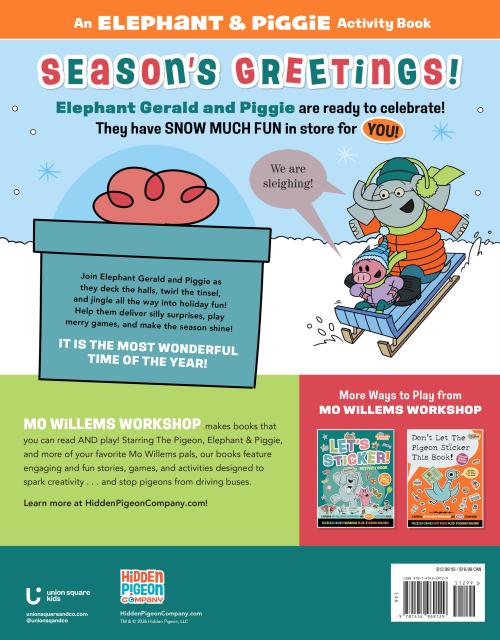 Help the best friends Elephant Gerald and Piggie deck the halls, wrap presents, and get ready for a very merry Christmas Eve celebration in this fun-filled activity book! Race through snowy sleigh rides, play merry games, and unwrap surprises galore with all their pals. With cheerful challenges and joyful giggles on every page, this Mo Willems Workshop activity book is bursting with holiday cheer—and includes pop-out ornaments and festive Christmas stickers!