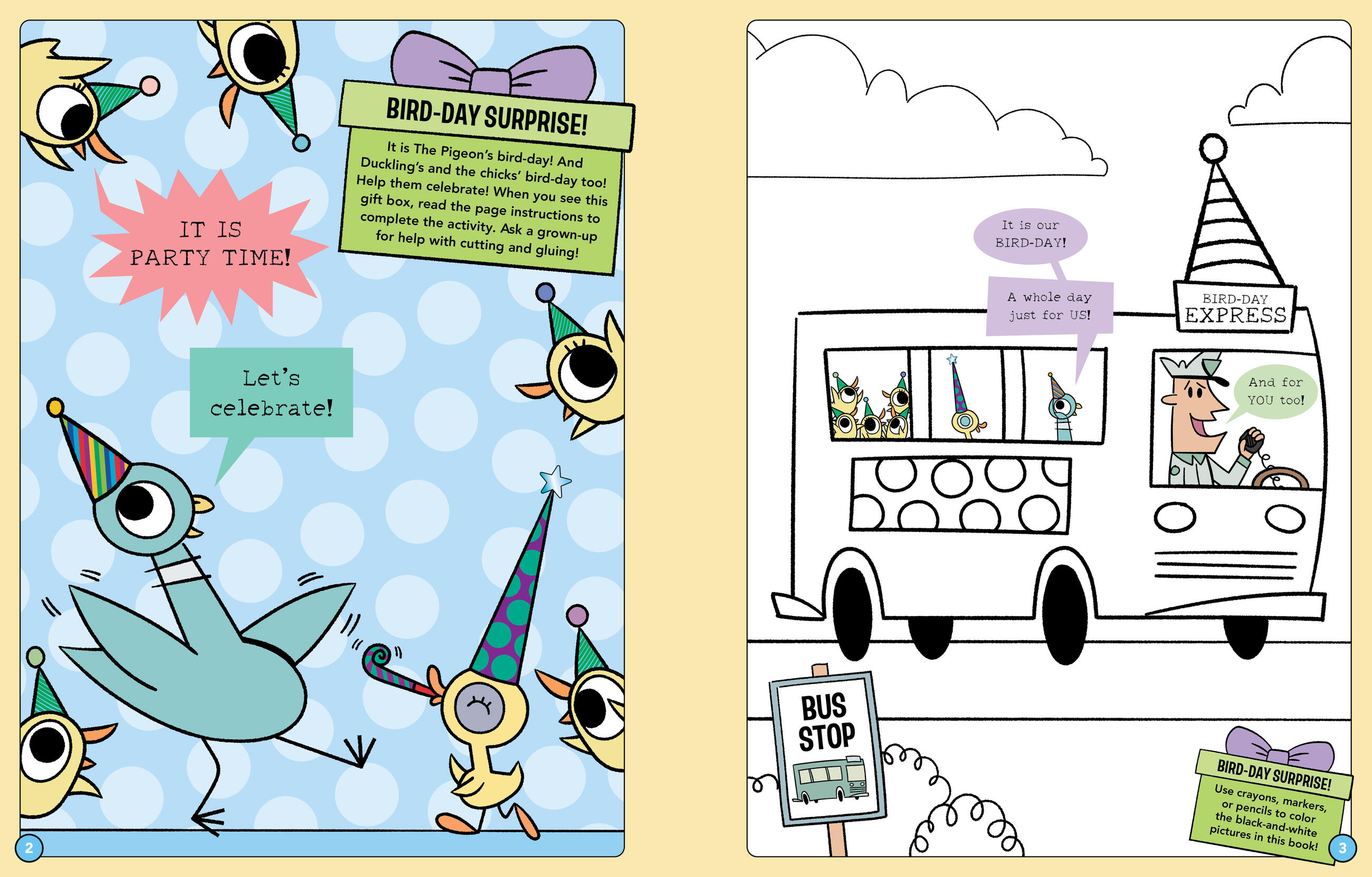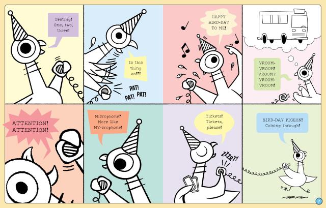 Join The Pigeon, Duckling, and the chicks for a bird-day like no other. From playing games to cake-decorating, there is so much to do—and only one day to do it all! Can The Pigeon and pals squeeze every bit of bird-day fun into one amazing day!?!