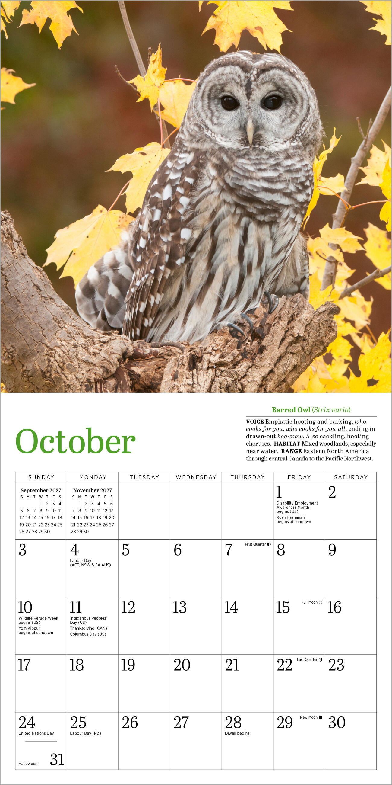 - MINI OWLS, MINI CALENDAR: The 7” x 7” mini calendar format is perfect for lockers, cubicles, and small spaces. Makes a great gift for students, birdwatchers, and owl aficionados!