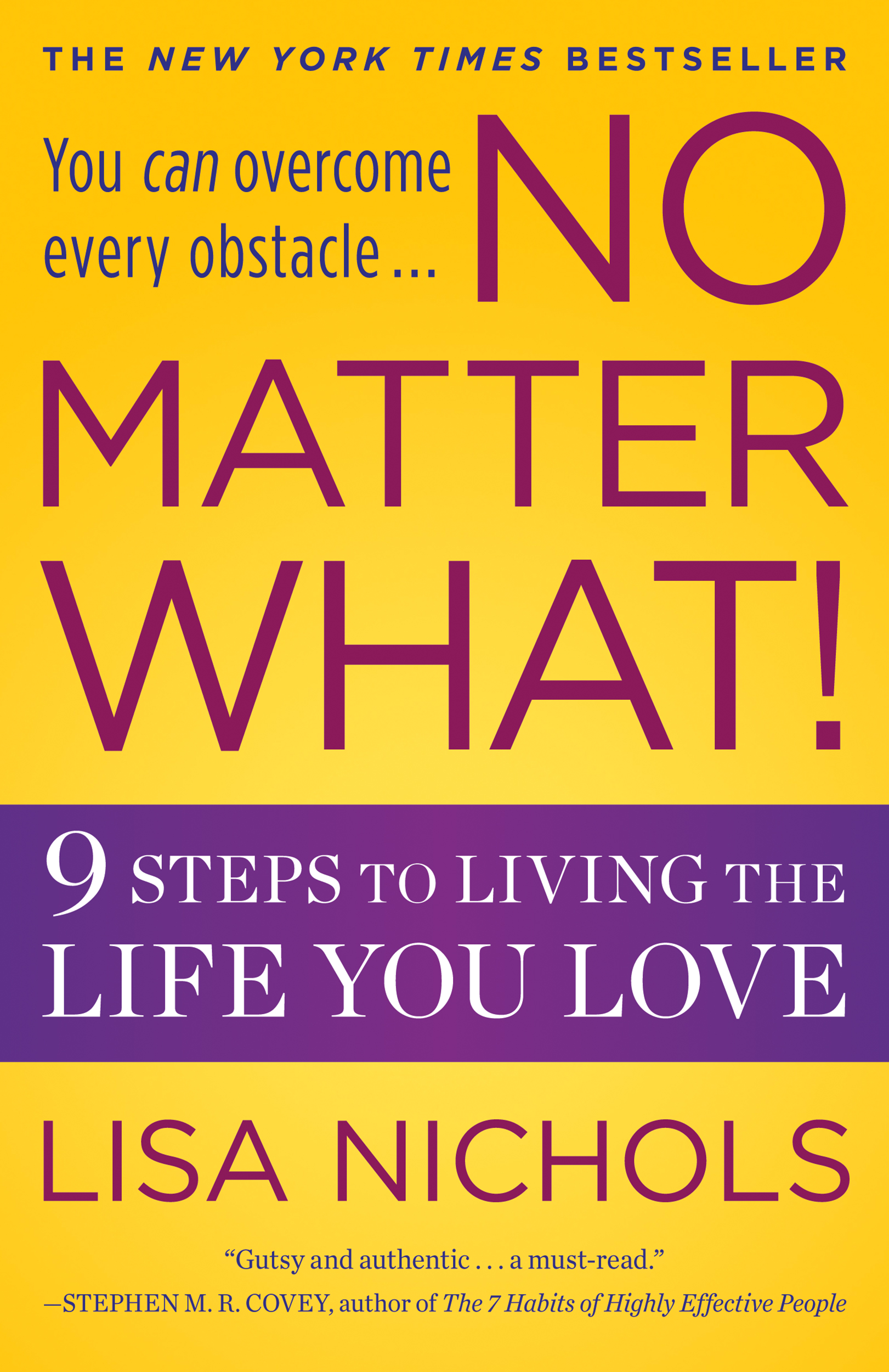 “Lisa Nichols is a rock star of personal growth! Gutsy and authentic, in No Matter What, Lisa uses her charismatic and influential style to teach resilience. Whether you are a seasoned student of character and enlightenment or just starting, this book is a must read, advanced course for possibility.” –Stephen M. R. Covey, author of The New York Times bestseller The Speed of Trust