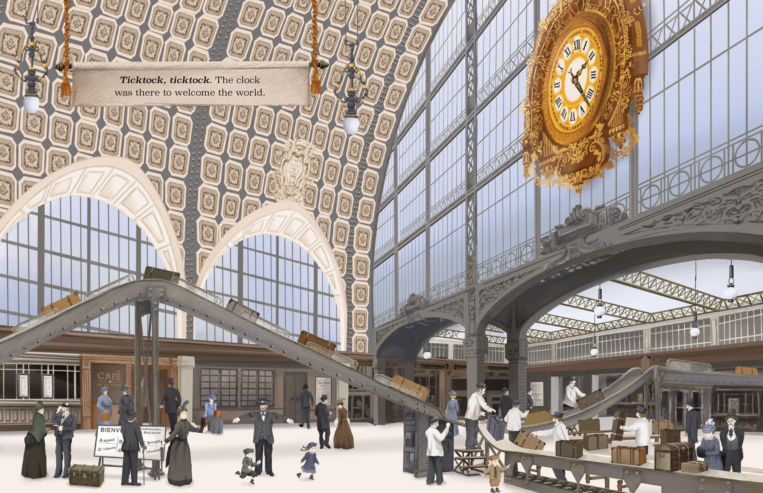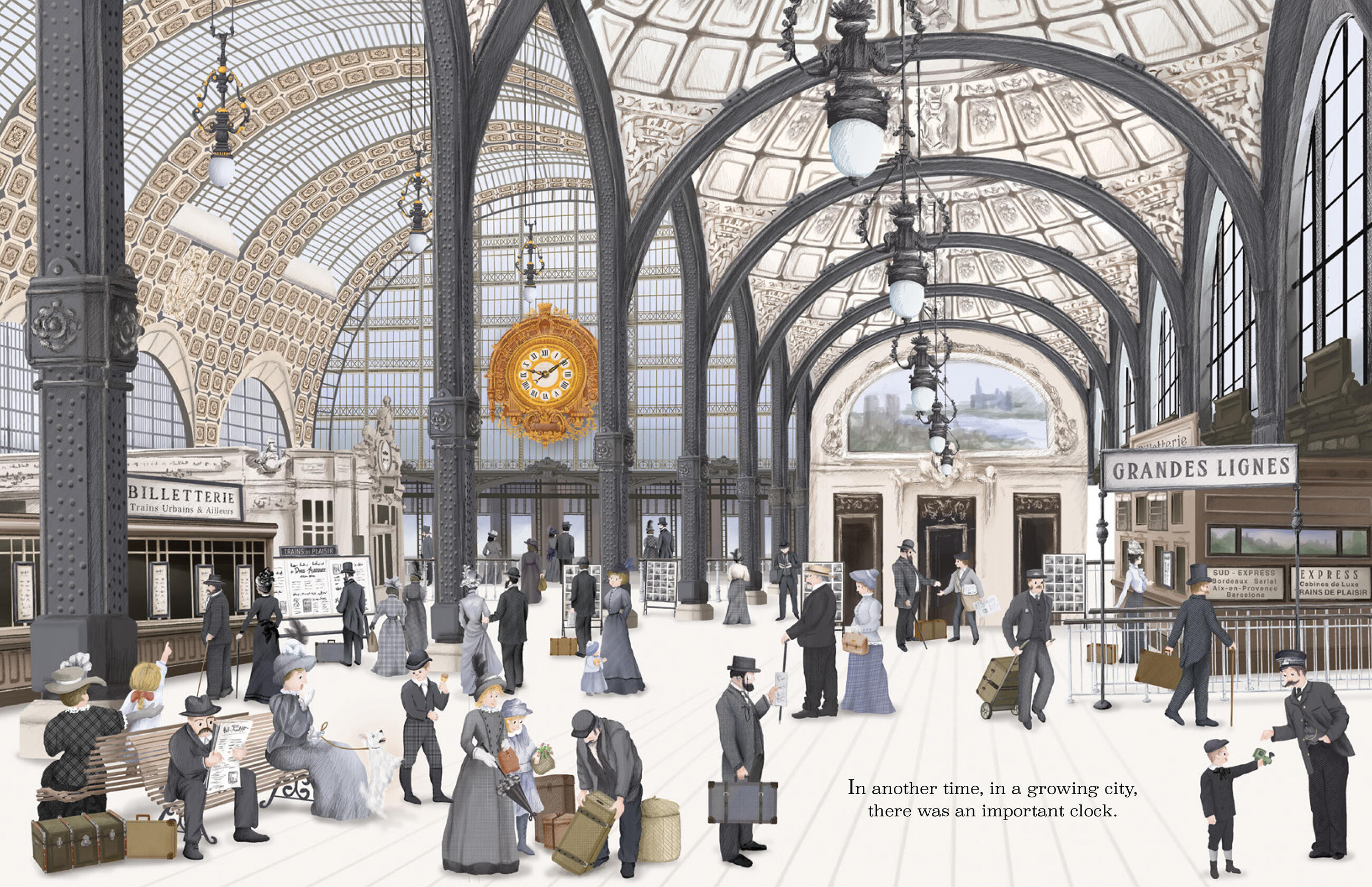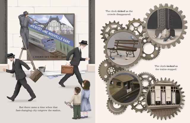 • "In a stunningly illustrated children's picture book, a majestic clock tick tocks its way through the evolution of a Paris train station."