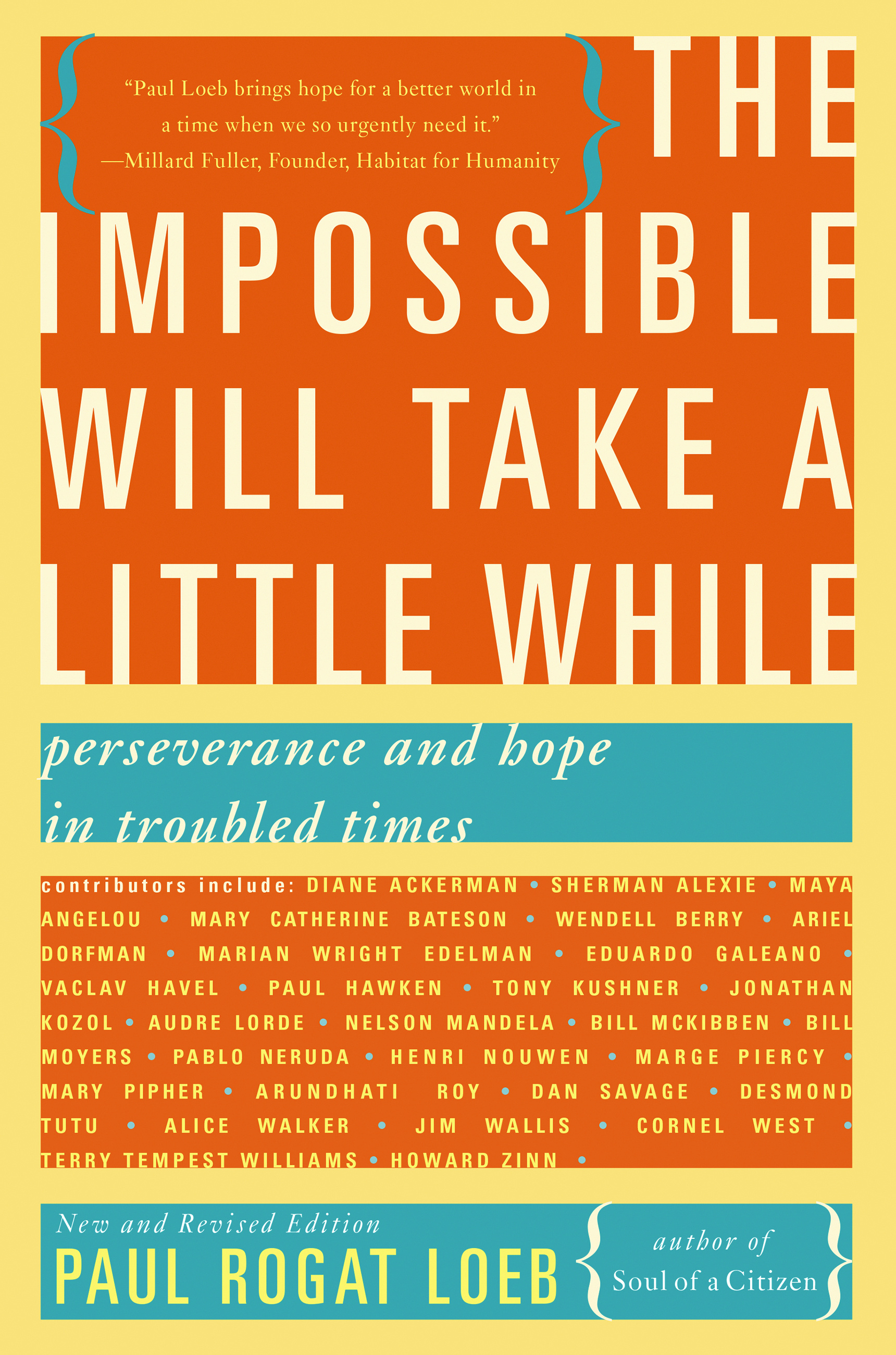 “An indispensable anthology of hope and inspiration. Put away your Prozac, and pick up The Impossible Will Take a Little While.”Arianna Huffington