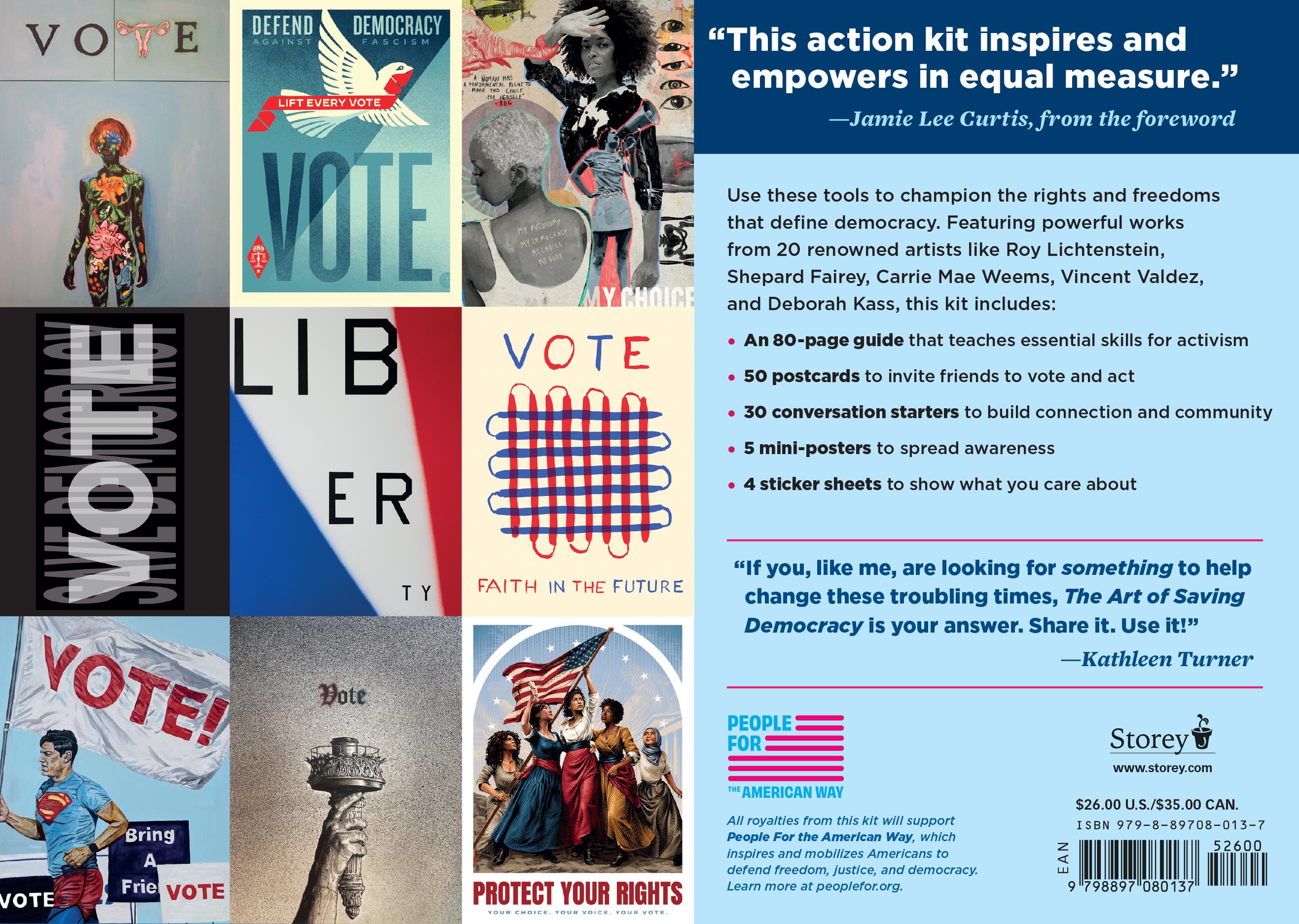 “For more than forty years, People For the American Way has effectively utilized creative political and cultural strategies to engage with and inspire our fellow Americans. Carrying that legacy forward, The Art of Saving Democracy shares lessons readers can use immediately.”Alec Baldwin