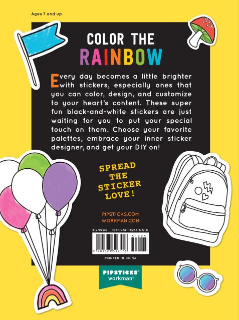 Combine the fun of stickers with the creativity of making them your own. Draw, bedazzle, and transform black-and-white designs into one-of-a-kind pieces of art with markers, colored pencils, or crayons.