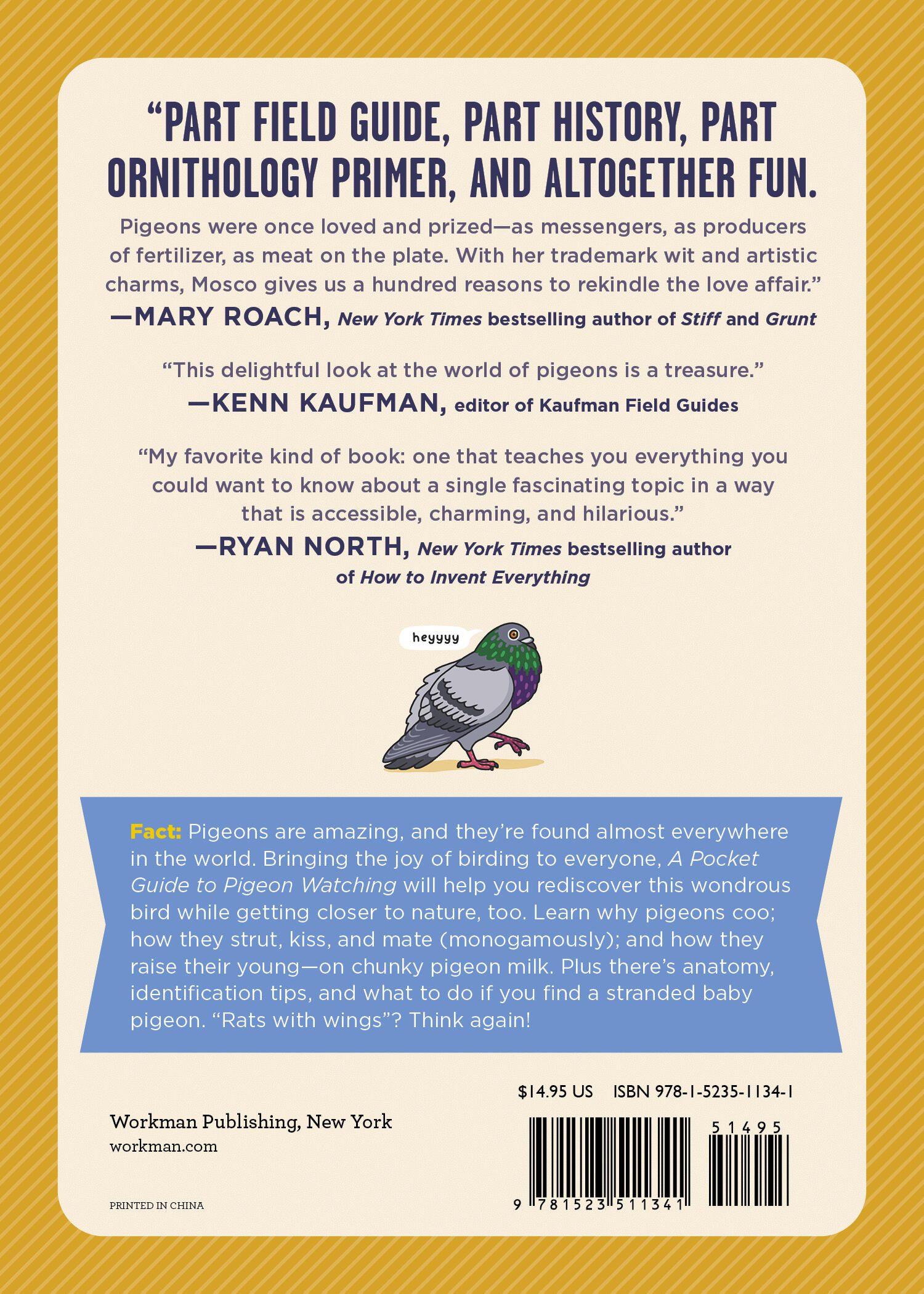 “This book will change what you think about pigeons! With loads of eye-opening pigeon science, delivered in playful and engaging style by Rosemary Mosco's text and illustrations, A Pocket Guide to Pigeon Watching will help you gain a whole new appreciation of these smart, savvy, and adaptable birds whose lives are so intertwined with ours.”