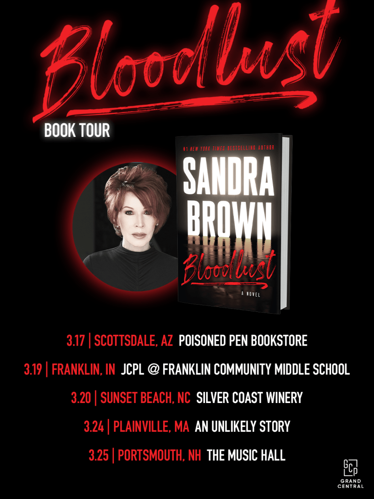 Sandra Brown – Bloodlust, Author Event Ticket price includes a copy of the book, meet & greet with author & a beverage.
