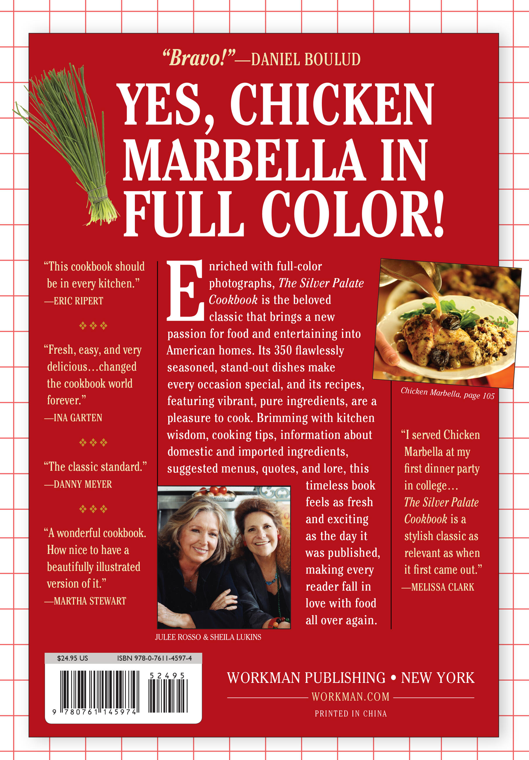 The New York Times "This is the book that changed the way America cooks."—Barbara Kafka "The classic standard."—Danny Meyer "To my generation what Joy of Cooking was to my mother’s."—Tom Valenti "Ahead of its time."—Todd English "Bravo Sheila and Julee!"—Daniel Boulud "Wholly satisfying."—Mimi Sheraton "Revolutionary!"—Steven Raichlen "Charming to look at, cozy to cook with." — Gael Greene "Long live The Silver Palate Cookbook."—Giuliano Bugialli