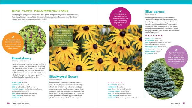 The Ultimate Wildlife Habitat Garden is a beginner-friendly handbook that will help you create a beautiful garden that attracts birds, bees, and butterflies. Garden expert Stacy Tornio makes it easy by explaining which plants attract specific creatures. Want birds? Plant black-eyed Susans. Looking to attract bumble bees? Choose bee balm. If you are looking to build a garden from scratch, there are ten plans you can choose from, including a hummingbird garden, a birdseed garden, a low-maintenance garden, a shade garden, and even drought-resistant options. You’ll also find expert advice on finding the right feeder, avoiding pesticides, and choosing native plants.