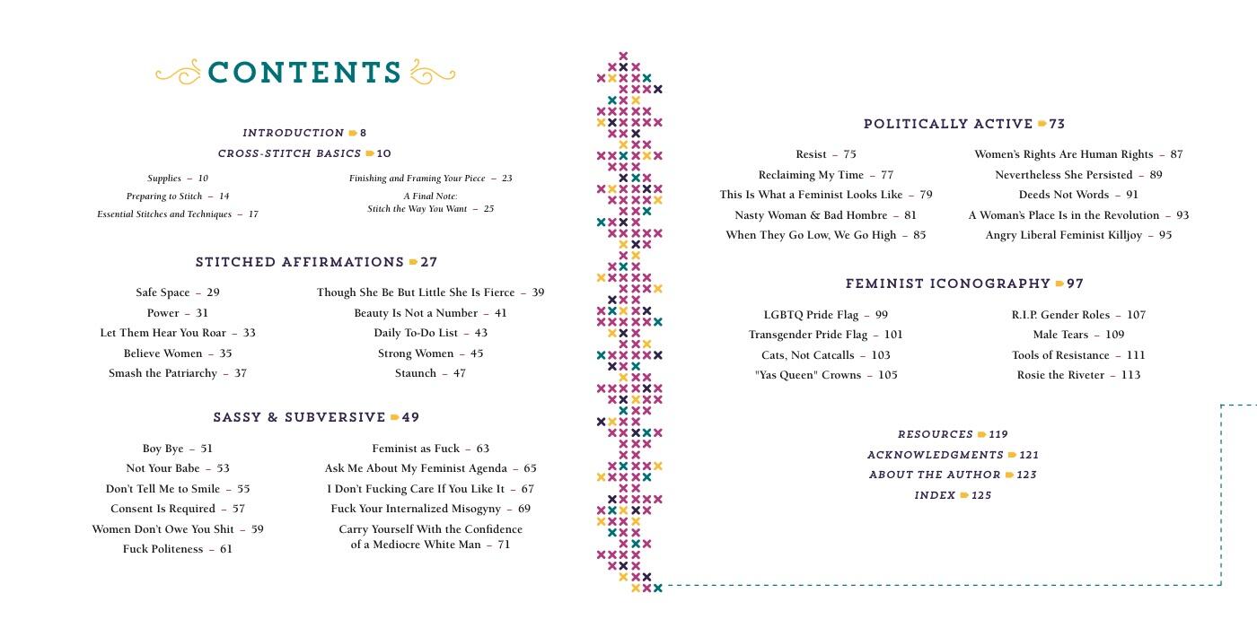 Crafty activists will love this snarky book with its 40 irreverent, vintage-inspired cross-stitch patterns. Whether you want to proudly announce to the world that you’re a nasty woman or remind others that a woman’s place is in the revolution, you’ll find edgy slogans, sharp one-liners, and cheeky images that make fabulous wall art or wonderful handmade gifts. An illustrated basics section will get you started, with information on materials, tools, techniques, and framing your finished pieces.