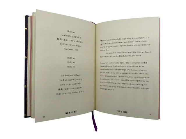 Give the gift of rest and escape with this exquisitely designed volume of inspiring writings by Tricia Hersey, powerfully illustrated by award-winning designer George McCalman and featuring a silk ribbon marker.