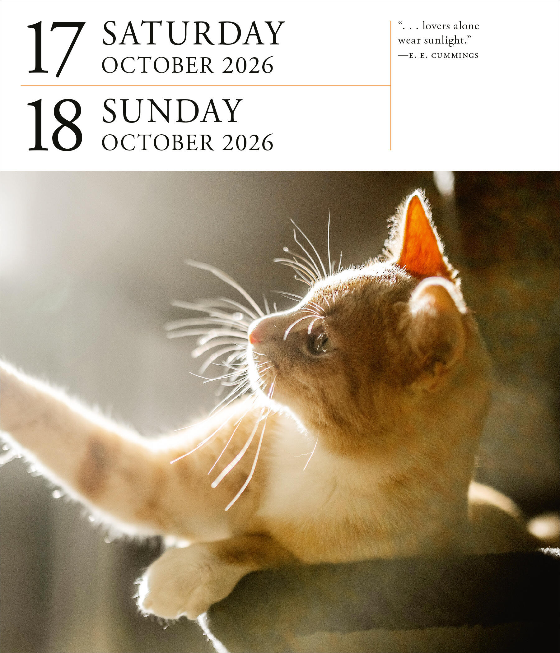 - GORGEOUS GIFT: Cat lovers of all stripes will have a delightful year with this calendar full of lush photos with witty captions, trivia, and quotes in the elegant gallery format.