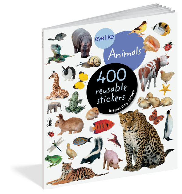 From lions and tigers to frogs and lizards, there are vibrantly colorful and photorealistic stickers for all types of animals–mammals, birds, reptiles, insects, and fish. Whether on windows, notebooks, lunch boxes, or scrapbooks, these peel-and-place stickers are perfect for creating your own work of art anytime, anywhere, and are designed to be stuck on, peeled off, and stuck on again without tearing or losing their “stick.” The books’ inside covers are glossy illustrated backgrounds on which kids can create lively and original sticker scenes―and then change them whenever they like.