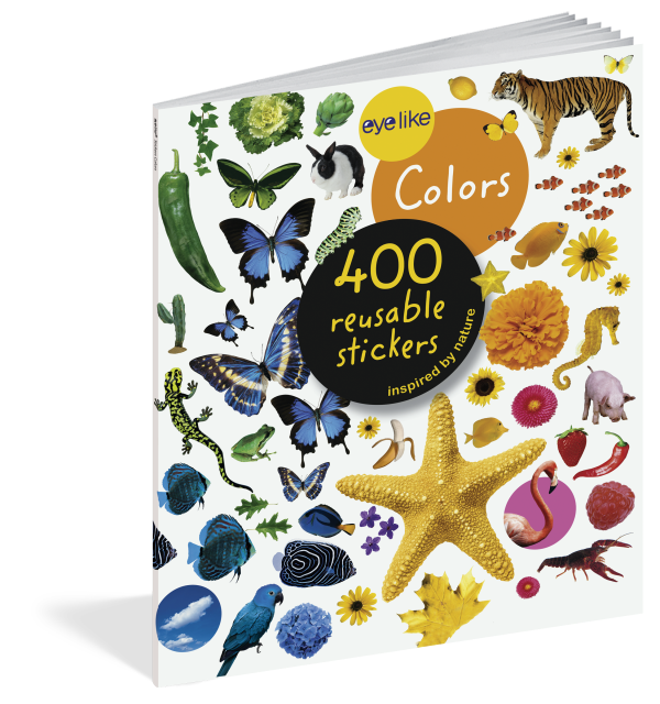 Containing stickers in every color of the rainbow, each page is full of vibrant, photorealistic images sorted by color (orange is for tigers, clownfish, pumpkins, parrots, and carrots!). Whether on windows, notebooks, lunch boxes, or scrapbooks, these peel-and-place stickers are perfect for creating your own work of art anytime, anywhere, and are designed to be stuck on, peeled off, and stuck on again without tearing or losing their “stick.” The books’ inside covers are glossy illustrated backgrounds on which kids can create lively and original sticker scenes―and then change them whenever they like.
