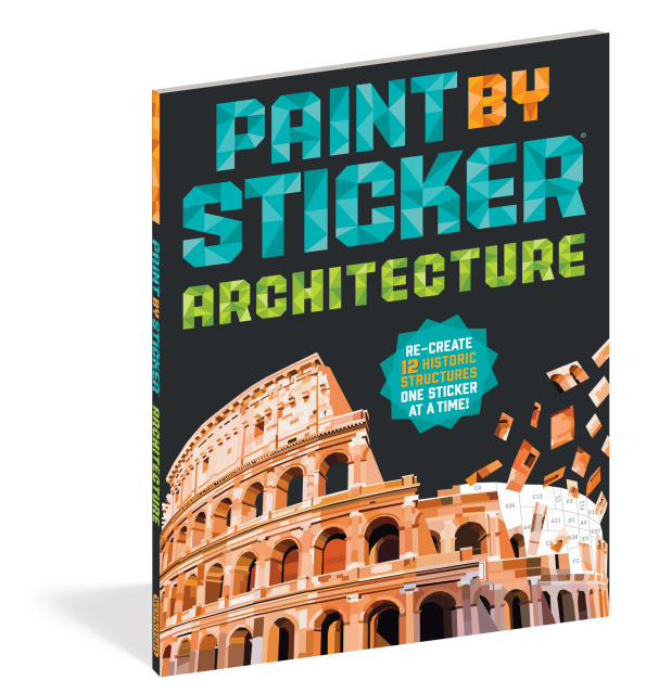 Paint by Sticker: Architecture contains everything you need to create 12 totally unique polygon paintings of famous buildings and structures—simply find a sticker (for example, A1), place the sticker in the spot labeled A1 on the corresponding sticker map, and watch your art come to life, sticker by colorful sticker. Create the signature curves of the Sydney Opera House; the impressive spindle-shaped towers of Barcelona’s La Sagrada Família; the iconic blocklike facade of Habitat 67 in Canada; and more. Plus the card-stock pages are perforated, so every finished piece can be easily removed for gifting or display.