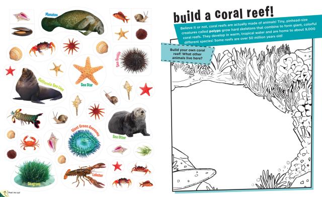 Discover the world’s oceans using hundreds of stickers featuring puffins and penguins, horseshoe crabs and clown fish, and mysterious deep-sea creatures like the Dumbo Octopus, the Vampire Squid, and more. Plus build your own coral reef, wade into tide pools, and explore water so deep that sunlight can’t reach it as you learn about the amazing diversity of life under the sea.