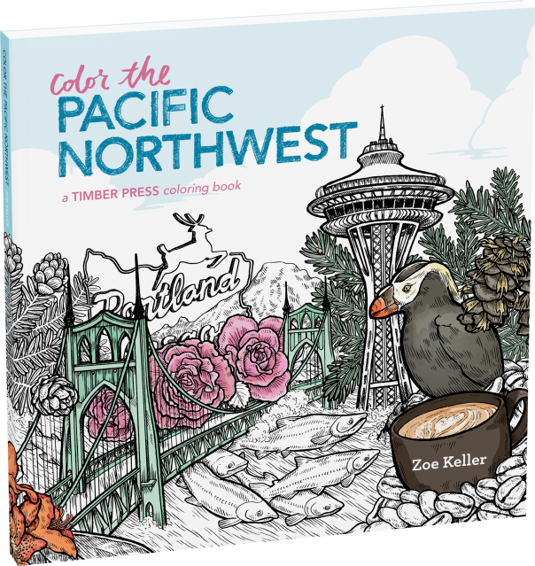 “Move over, kiddos. This is grown-up time. Timber Press’s new Color the Pacific Northwest book for adults offers detailed Zoe Keller illustrations of endangered white-tailed deer, a grumpy Sasquatch amid wildflowers, and Oregon mushrooms with long Latin names.” I>Portland Monthly
